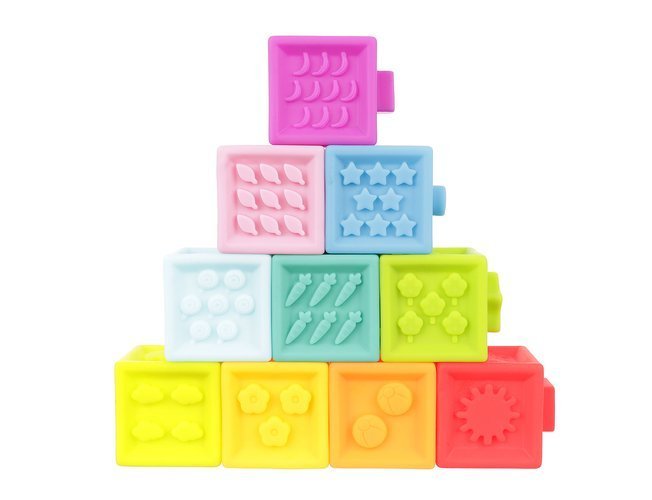 bloki, tos saspiežot, rada maigu skaņu, sniedzot mazulim patīkamu un interesantu