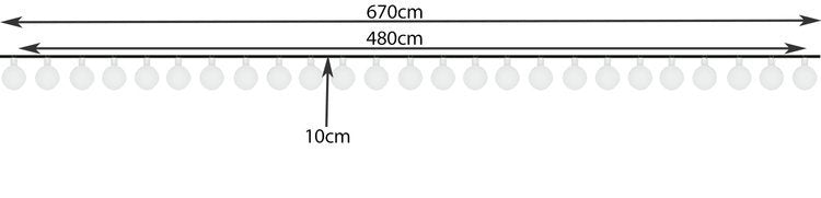 * Katra izgaismota bumbiņa atrodas 10 cm attālumā viena no otras