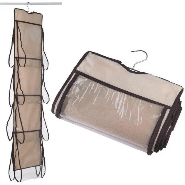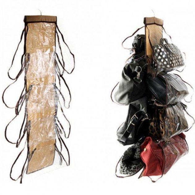 Vai jums nepatīk nekārtība jūsu garderobē? Vai vēlaties ietaupīt vietu nelielā dzīvoklī? Jums nav ne jausmas, kur glabāt savus apavus vai rokassomas? Visu šo problēmu risinājums ir garderobes vai drēbju skapja piekarināmais organizators. Varat to izmantot arī apavu, rotaļlietu, somu vai citu priekšmetu uzglabāšanai. Organizatoram ir 8 caurspīdīgas kabatas, kurās var uzglabāt līdz 16 somām. Papildus komplektā ietilpst metāla pakaramais pakarināšanai.