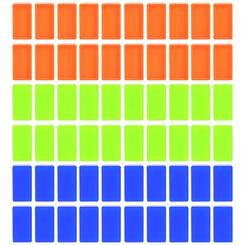 krāsas un caurspīdīgais dizains piesaista bērnu uzmanību, kad viņi kārto domino,