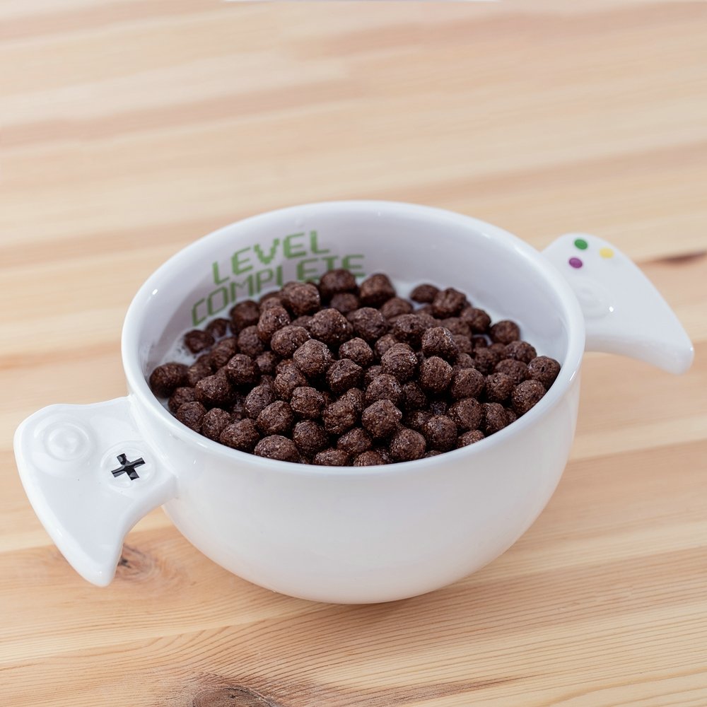 Ja jums ir jāstrādā, jāpieskata bērni vai kaut kas cits, nevis jāspēlē, vienkārši satveriet mūsu spēlētāja bļodu, lai pieskartos un nekustīgi zem pirkstiem sajustu spēles kontrollera apakšpuses. Tātad, ja esat prom no savas mīļotās konsoles, mūsu spēlētāja bļoda ir obligāta un tikai jums palīdzēs. Izgatavots no keramikas ar kontroliera formas rokturiem, jūs vienkārši nevarat to turēt, neizliekoties par sacīkšu braucēju vai nešaujot citplanētiešus kosmosā. Funkcijas: - spēļu stila bļoda, iedvesmojoties no konkolas spēles kontroliera - divi kontroliera formas rokturi - izgatavoti no pārtikas kvalitātes keramikas - krāsa: balta (pieejama arī melna) - nav piemērota lietošanai trauku mazgājamā mašīnā vai mikroviļņu krāsnī - TIKAI ROKU MAZGĀŠANA - lieliska dāvana spēlēm atkarīgiem cilvēkiem