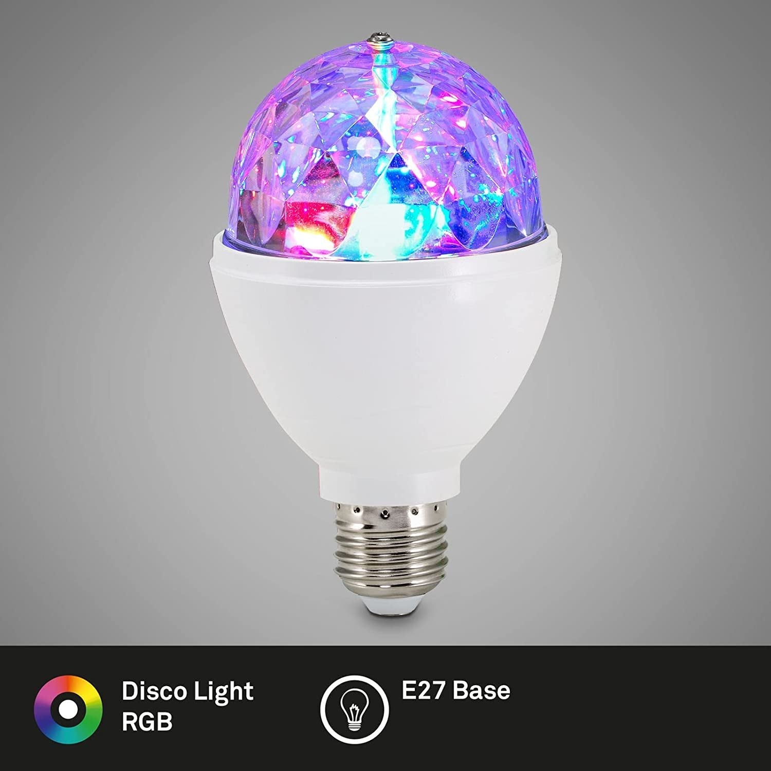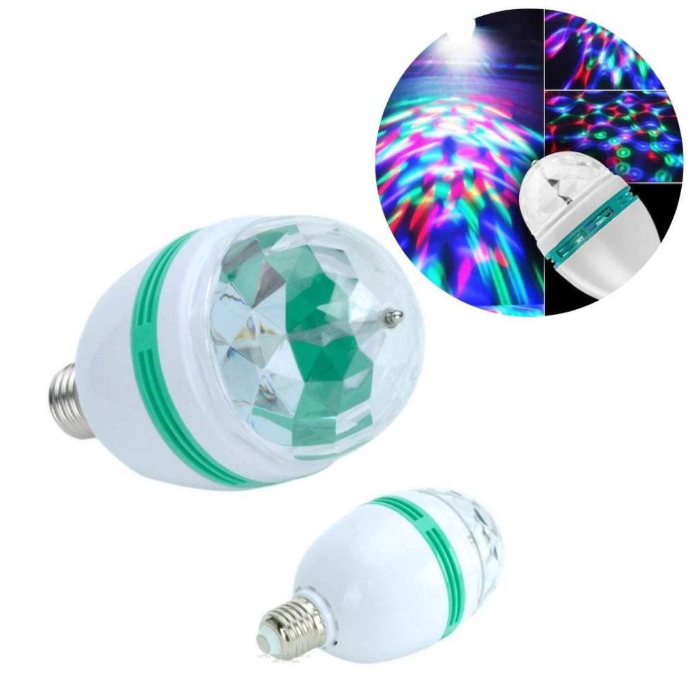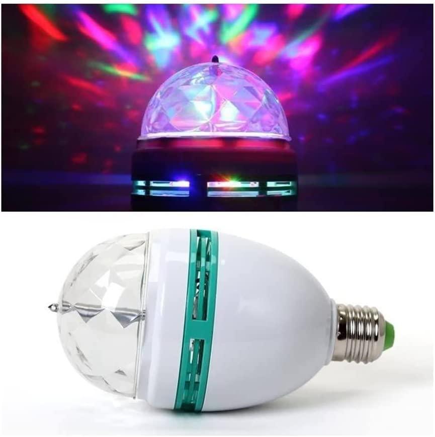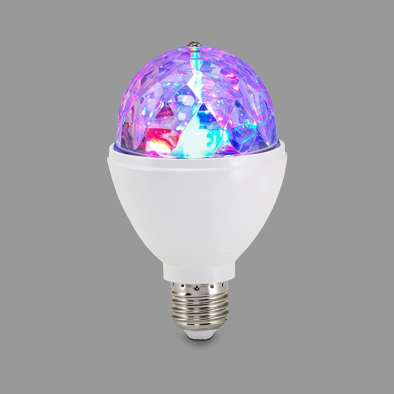 Rotējoša spuldze rada pārsteidzošus apgaismojuma efektus telpā. Sarkanā zilā un zaļā krāsa mainās refrakcijas rezultātā uz spuldzes stikla. Spuldze izgatavota no izturīgas plastmasas, korpusa iekšpusē ir motors, kas  kustina puslodi, kas dod lielisku efektu.