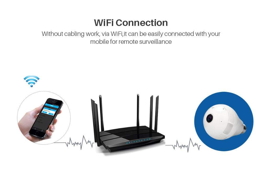 WIFI kamera-spuldze vienkāršos mājas uzraudzību. Pateicoties iebūvētajam WIFI modulim, kameru var pieslēgt bez papildus LAN kabeļa uzstādīšanas.
