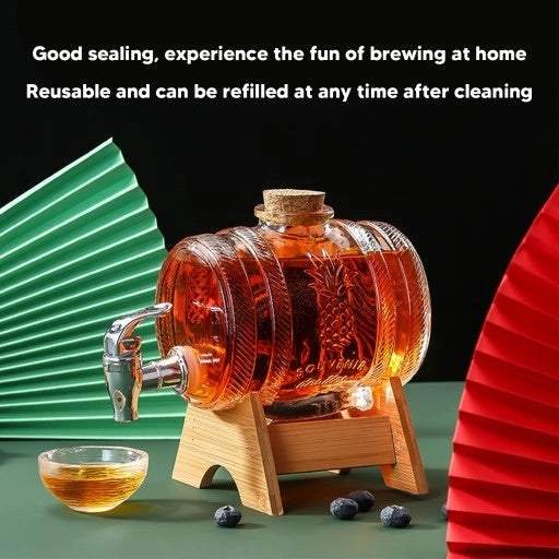 Stikla muca ir produkts, kas noderēs daudzās situācijās un ir ideāli piemērots dāvināšanai. Izgatavota no bieza stikla ar elegantu koka statīvu un zelta krāsas krānu, kas izskatās lieliski!