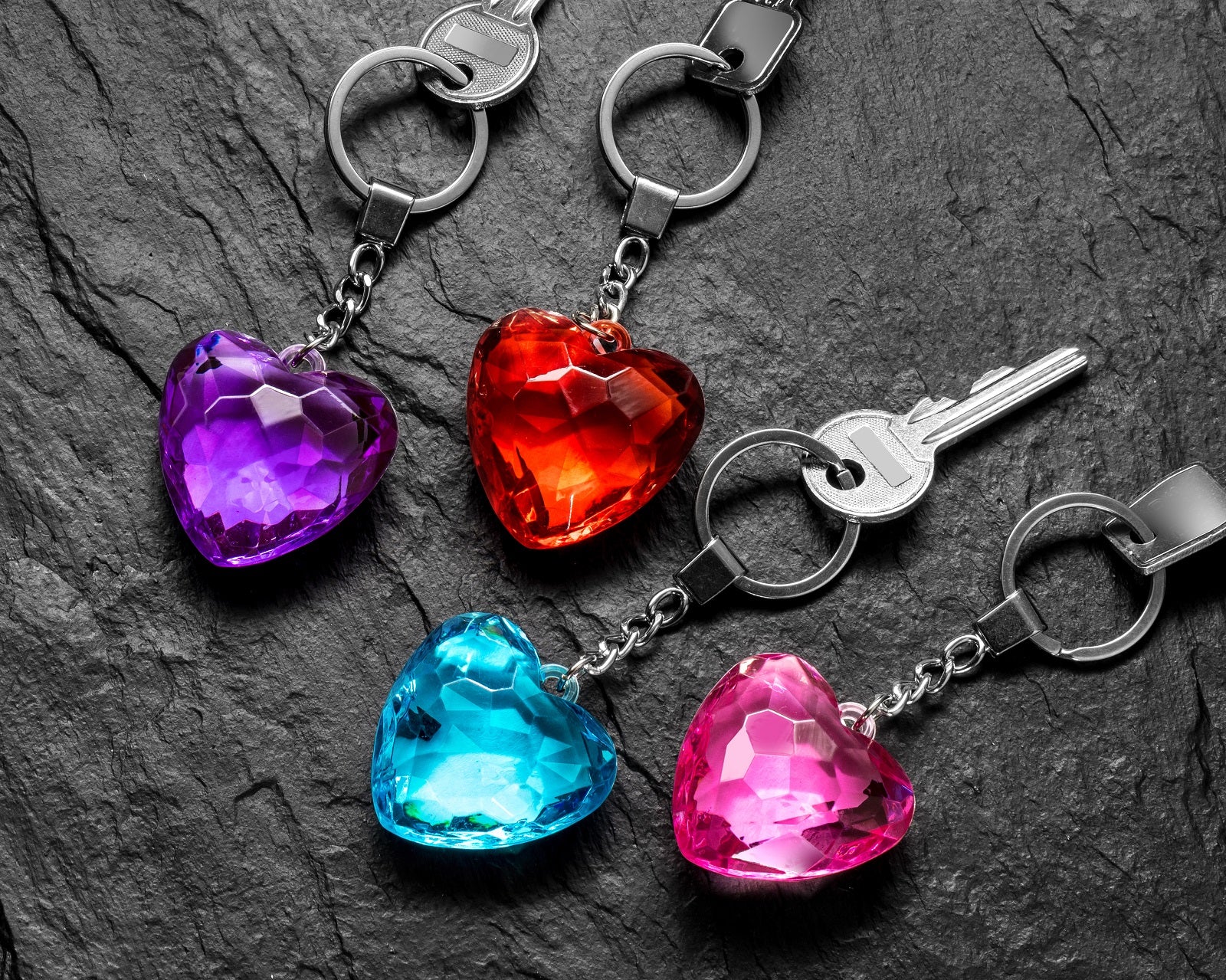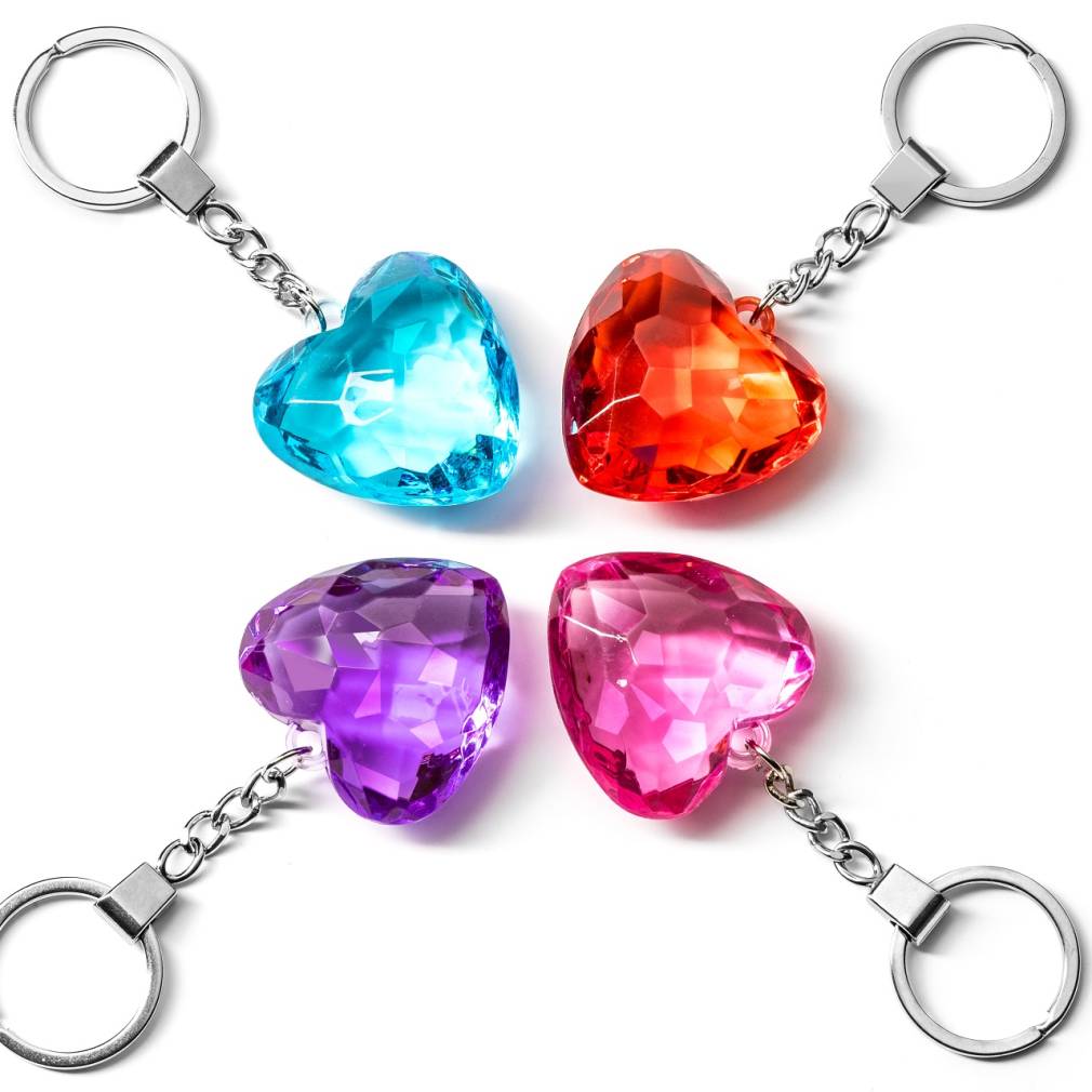 Lielisks, romantisks un mirdzošs 4 stikla sirsniņu komplekts. Funkcijas: - lielisks, romantisks un mirdzošs 4 stikla sirsniņu komplekts - ar metāla gredzenu atslēgām vai kā kulonu somai vai mugurai - četrās krāsās: sarkana, zila, violeta, rozā - materiāls: labas kvalitātes plastmasa