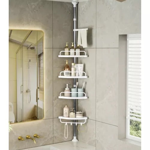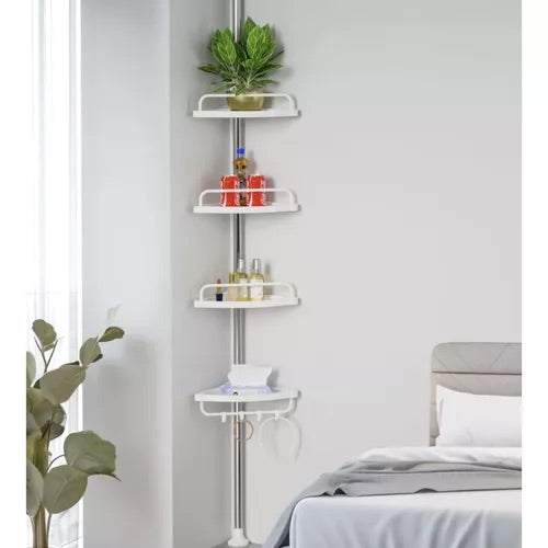 Tam ir 4 plaukti un pakaramais, kuru varat novietot jebkurā vēlamajā augstumā, jo tie pārvietojas pa centrālo stieni. Varat arī mainīt stieņa augstumu no 230 līdz 300 cm, tāpēc tas lieliski iederas gandrīz jebkurā vannas istabā. Neuztraucieties par tīrīšanu – viegli! Plaukti ir