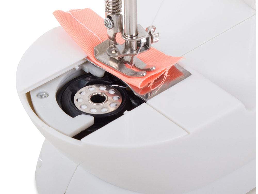 Mini šujmašīna ir lieliska ierīce ātrai un vienkāršai šūšanai. Pateicoties tam, var sašūt bikses,saplēstus audumus. Pateicoties tās mazajam izmēram, mašīnu ir viegli uzglabāt un transportēt. Mašīna darbojas ar komplektācijā iekļauto kājas pedāli kā parastajā lielajā mašīnā.