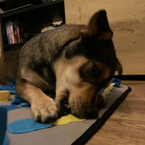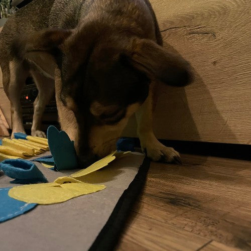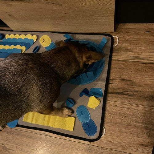 Jūs varat ielikt paklājiņā kādu kārumu, mazu cepumu vai gaļas gabalu un