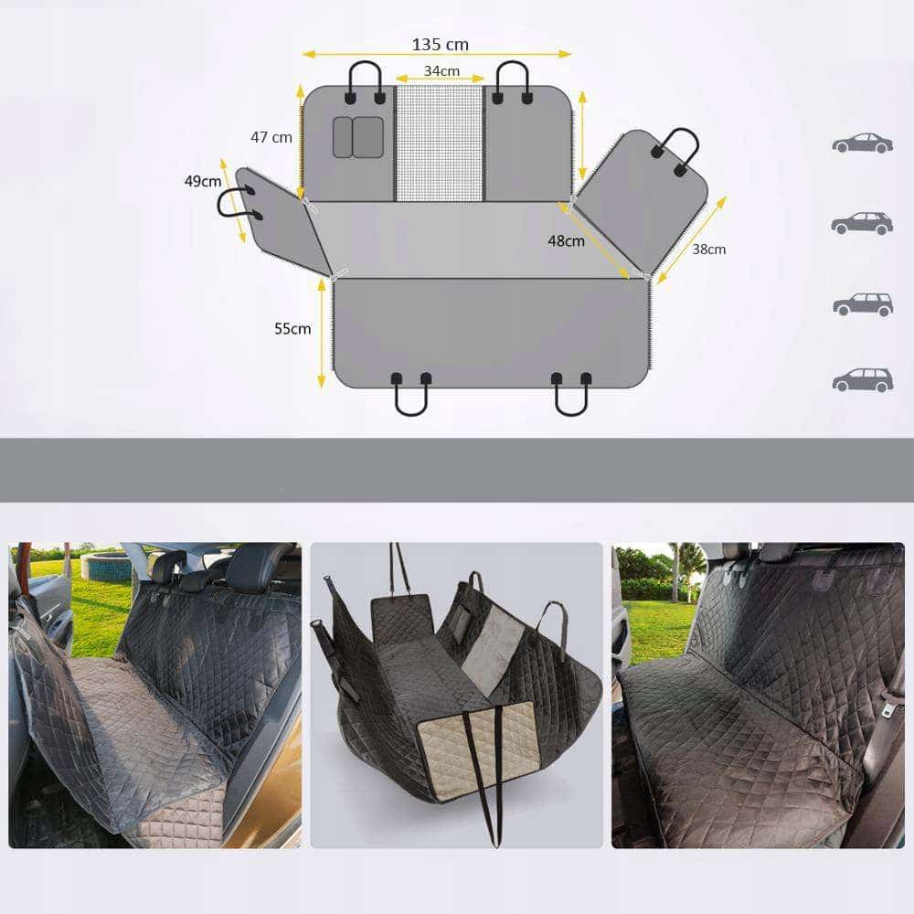 Automašīnas sēdekļa pārvalks aizmugurējiem sēdekļiem un bagāžniekam. Izgatavots no auduma un augstas kvalitātes plastmasas. Pārvalks ir piestiprināms pie jūsu sēdekļiem ar dažiem materiāla āķiem. Turklāt tas ir ūdensizturīgs, lai palīdzētu aizsargāt jūsu automašīnu no noplūdēm vai negadījumiem.