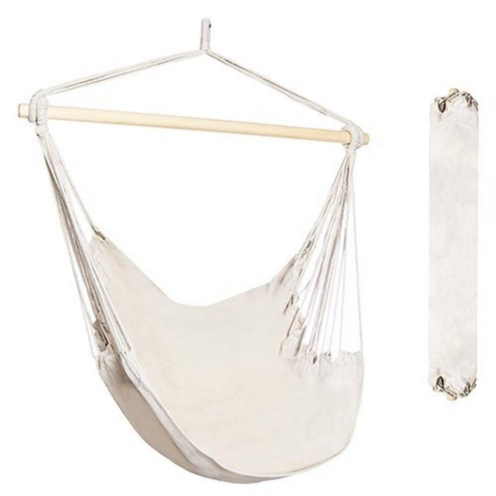 Šūpuļtīklam ir koka šķērsstienis, kas palīdz saglabāt ērtu stāvokli, atrodoties