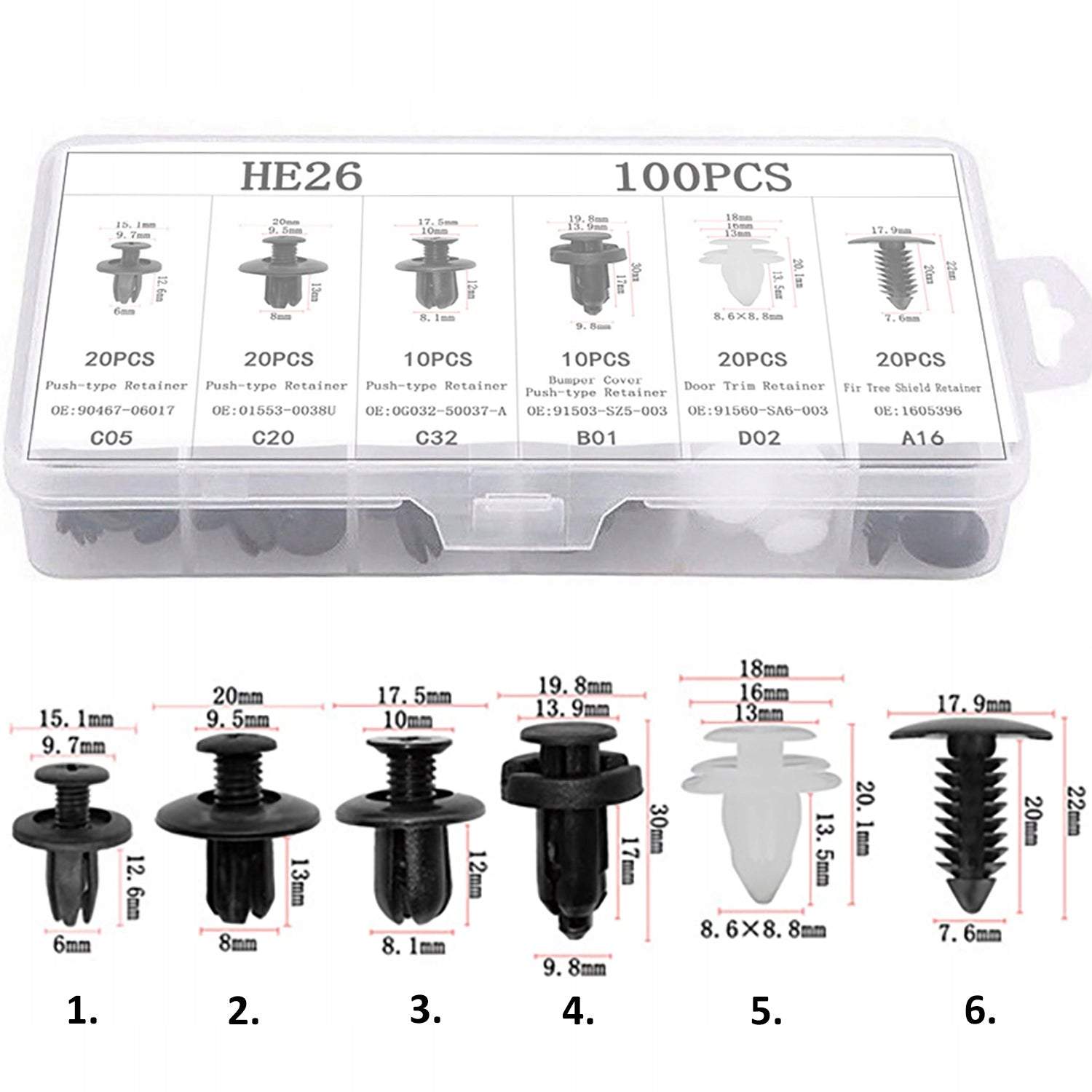 * Komplektā ir seši dažādi klipšu modeļi, kas ir savietojami ar dažādām auto