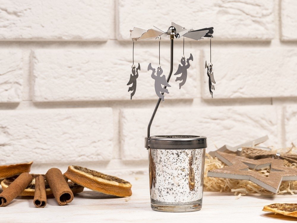 Sveces siltums liks eņģeļiem un karuselim griezties un radīs jaukus kustīgus atspulgus uz griestiem. Funkcijas: - nostalģisks tējas sveces turētājs ar rotējošiem eņģeļiem - sveces siltums liks aļņiem un karuselim griezties - jauki atspīdumi pārvietojas pa griestiem - nav iekļauta tējas svece - dāvanu iesaiņojums - pieejams arī ar aļņiem