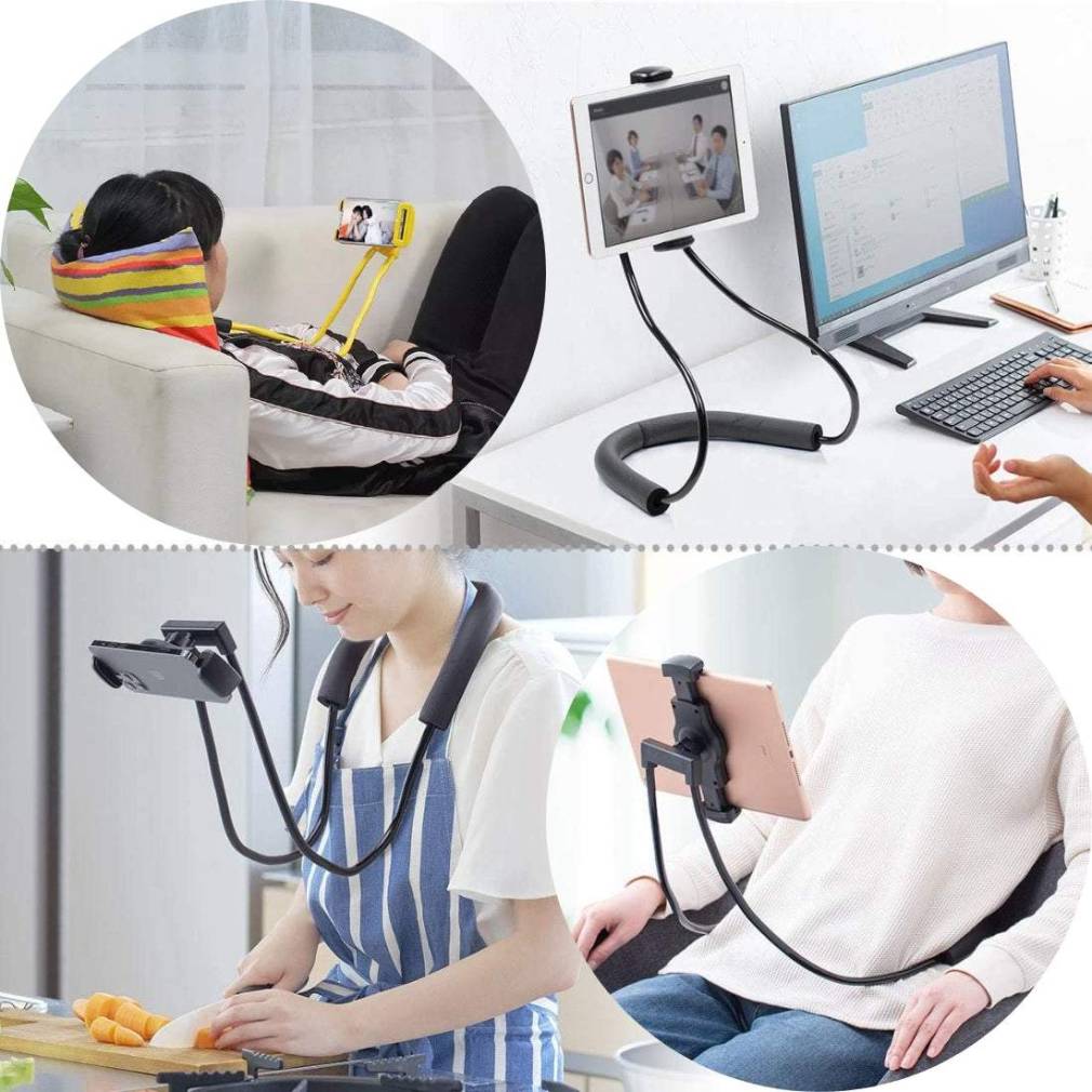 Telefona turētājs ir sensacionāls sīkrīks katram slinkam cilvēkam. Tam ir elastīgas rokas, kas ļauj to ērti aplikt ap kaklu, izveidot statīvu vai selfiju kātu. Jums nav visu laiku jātur rokas augšā, jo rokturi var pielāgot jūsu vajadzībām. Tas ir ideāli piemērots seriālu, filmu skatīšanai, grāmatu lasīšanai vai spēļu spēlēšanai. Tam ir mīkstas un neslīdošas rokturi, kas nodrošina drošu satvērienu un aizsargā pret nobrāzumiem.