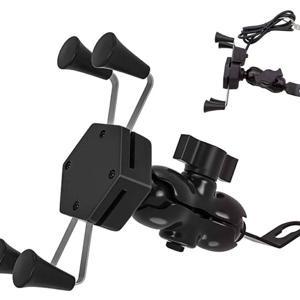 Universāls motocikla telefona turētājs. Ļoti viegli montējams un ērts lietošanā – tas der visu veidu mobilajām ierīcēm un nodrošina to stabilu turēšanu braukšanas laikā. Izgatavots no metāla un cietas plastmasas. Silikona āķi lieliski pielāgojas telefona formai un neļauj tam izkrist. Iebūvētais USB ports ļauj uzlādēt ierīci braukšanas laikā. ??UZMANĪBU: Turētājs ir paredzēts 12V uzstādīšanai!