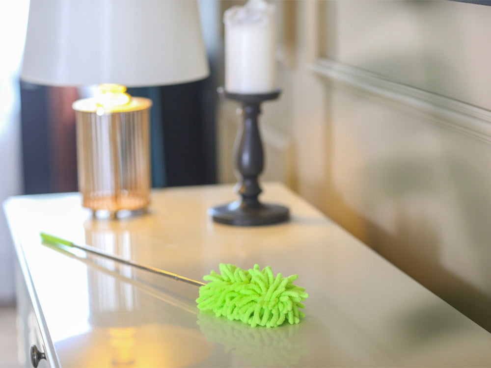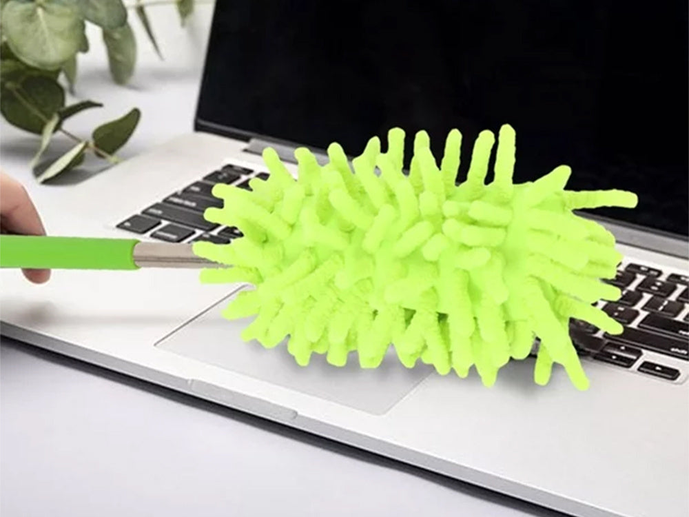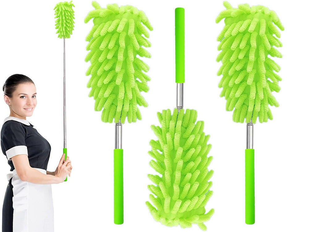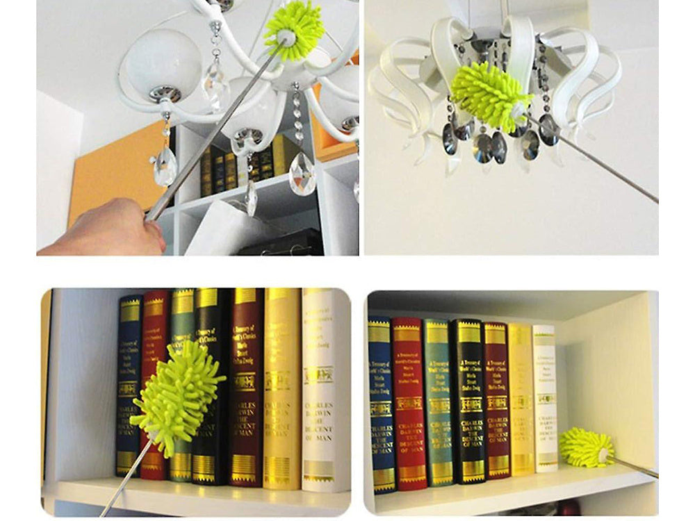 Teleskopiskā putekļu slota, gara, salokāma, mikrošķiedra. Teleskopiskā putekļu slota piedāvā ērtu risinājumu netīrumu noņemšanai grūti sasniedzamās vietās, piemēram, aiz mēbelēm vai zem griestiem. Tā ir izgatavota no ļoti absorbējoša materiāla, kas garantē efektīvu putekļu savākšanu. Turklāt tai ir iespēja noņemt birsti un atvienot to no salokāmā roktura, lai mēs varētu mazgāt materiālu ar rokām vai veļas mašīnā. Tehniskās specifikācijas: - augstas kvalitātes dizains - teleskopiska - ērta netīrumu noņemšana - absorbē ūdeni un netīrumus - birste izgatavota no mikrošķiedras - var tīrīt mitrā vai sausā veidā - ideāli piemērota grūti sasniedzamām vietām - garums: no 25 cm līdz 75 cm - krāsa: zaļa. Komplektā ietilpst: - teleskopiska birste - folijas iepakojums