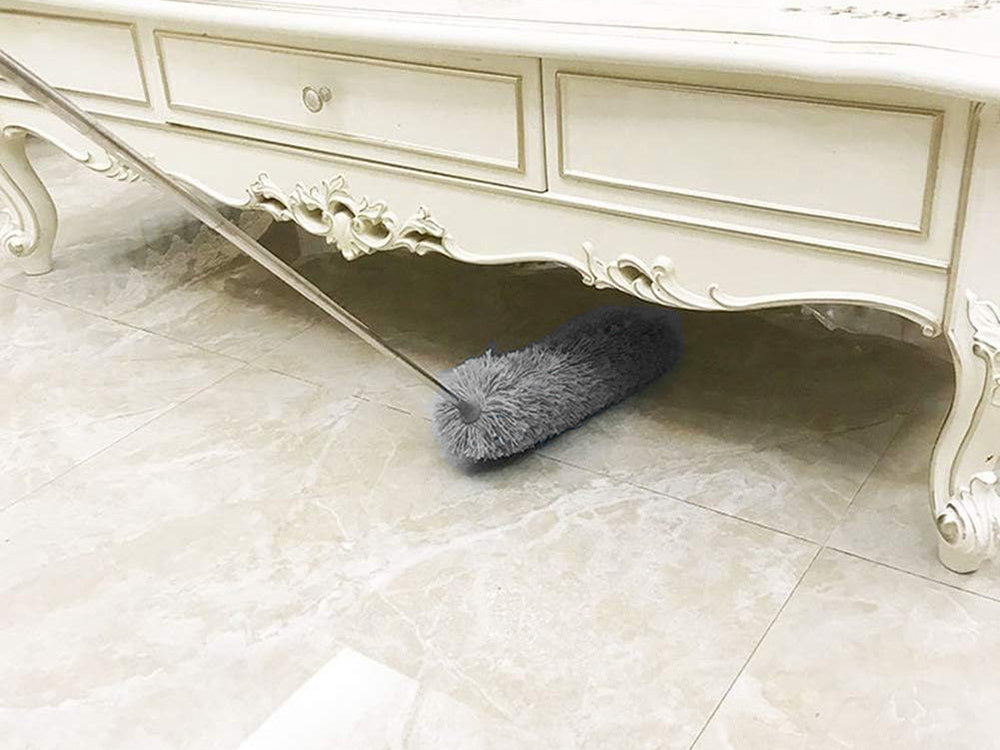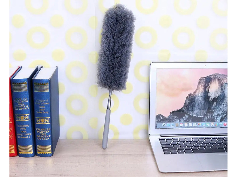 Teleskopiskā putekļu slota, teleskopiskā, garā putekļu slota. Teleskopiskā putekļu slota piedāvā ērtu risinājumu netīrumu noņemšanai grūti sasniedzamās vietās, piemēram, aiz mēbelēm vai zem griestiem. Tā ir izgatavota no ļoti absorbējoša materiāla, kas garantē efektīvu putekļu savākšanu. Ļoti ērti lietojama, tās garumu var pielāgot savām vajadzībām, izmantojot teleskopisko mehānismu. To var bez piepūles pagarināt uz grūti sasniedzamām vietām un pēc tam viegli saīsināt, kad tīrīšana ir pabeigta. Tehniskās specifikācijas: - augsta konstrukcijas kvalitāte - teleskopiska - ērta netīrumu noņemšana - absorbē ūdeni un netīrumus - birste izgatavota no mikrošķiedras - var tīrīt mitrā vai sausā veidā - ideāli piemērota grūti sasniedzamām vietām - garums: no 35 cm līdz 83 cm - krāsa: pelēka Komplektā ietilpst: - putekļu birste - folijas iepakojums