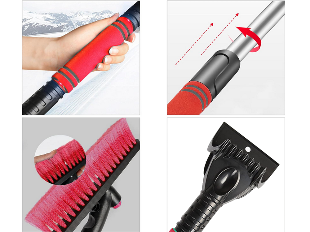 Teleskopiska skrāpju birste, salokāma, automašīnas logu sniega un ledus skrāpēšanai
