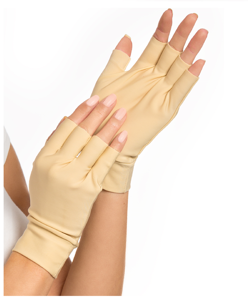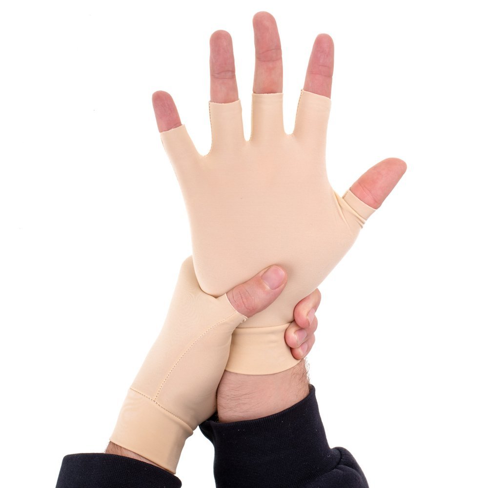 Īpašs materiālu sajaukums liek šiem cimdiem darīt brīnumus pietūkušām vai sāpošām rokām! Šie cimdi saspiež, atbalsta un atstaro ķermeņa siltumu locītavās un muskuļos, lai nodrošinātu labvēlīgu siltuma terapiju un kompresiju. Tas var palīdzēt locītavu, muskuļu un kaulu stīvuma, aukstām rokām, pirkstu un roku pietūkuma. Īpaši viegli uzvilkt un novilkt. Neticami elastīgs ar atvērtiem pirkstiem. Ērts un superelastīgs. Mazgājams siltā ūdenī ar ziepēm, elpojošs un īpaši viegls. Viens izmērs. Uzmanību: Šis produkts nav medicīnisks produkts un nav paredzēts jebkādu slimību diagnosticēšanai, ārstēšanai vai profilaksei.