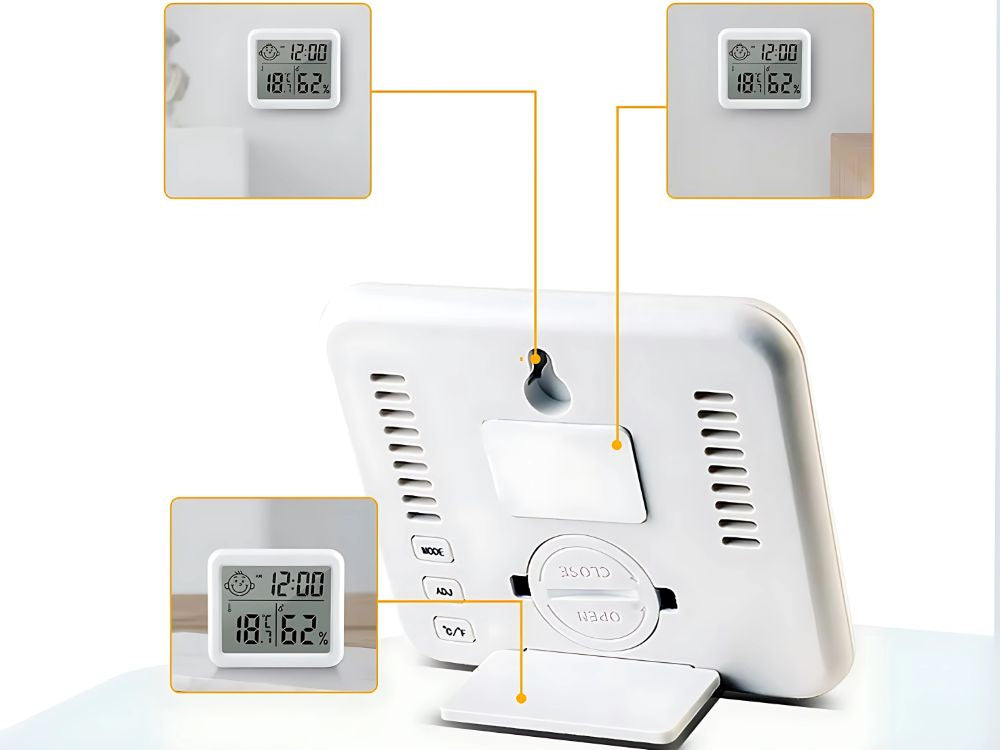 Termometrs-higrometrs pulkstenis-kalendārs iekšējais bezvadu ⏰️ Termometrs-higrometrs pulkstenis-kalendārs - viss vienā ierīcē! Mūsdienīga daudzfunkcionāla ierīce, kas apvieno termometru, higrometru, pulksteni un kalendāru. Ideāli piemērota temperatūras un mitruma uzraudzībai jūsu mājās, birojā, guļamistabā vai bērnu istabā. Tās viegli nolasāmais LCD displejs ļauj ātri nolasīt datus, un kompaktais dizains ļauj to iederēties jebkurā interjerā. Precīzs temperatūras un mitruma mērījums, pateicoties iebūvētajam higrometram un termometram, ļauj jebkurā laikā pārbaudīt telpas apstākļus. Ierīce rūpējas par jūsu komfortu, palīdzot radīt veselīgu vidi jūsu mājsaimniecībā. ⏰ Ierīces priekšrocības: - precīzs reāllaika mērījums, temperatūras diapazons - 50°C - 70°C - mitruma diapazons ir 10% relatīvais mitrums - 99% relatīvais mitrums. - Komforta indikatora zīmēšana: smaidoša seja norāda uz "komfortu" (relatīvais mitrums: 40% - 70%), bet skumja seja norāda uz "diskomfortu" (relatīvais mitrums: <40% vai > 70%). - liels LCD displejs, viegli nolasāms. - elastīgs novietojums, var novietot uz galda vai piekārt pie sienas. - ērti lietojams, °C/°F var pārslēgt jebkurā laikā. - plašs pielietojumu klāsts, piemērots lietošanai daudzās vietās, piemēram, interjerā, birojos, mājās, bērnu istabās, vannas istabās, puķu dobēs utt. ierīces iestatījumi: - ievietojiet vienu - °C/°F pogu - temperatūras iestatīšana Celsija vai Fārenheita grādos - mitrums - gaisa mitrums - temperatūra - temperatūras pulkstenis: - nospiediet režīma pogu uz vairākām sekundēm - cipari sāks mirgot, iestatiet laiku uz - iestatiet laiku. Izmantojiet regulēšanas pogu, lai pievienotu laiku, režīma poga apstiprina un pāriet uz nākamo funkcijas iestatījumu - gada, mēneša, dienas iestatīšanu. tehniskās specifikācijas: - liels LCD displejs - zīmēšanas komforta indikators - moderns dizains - var iekarināt - iespēja ierīci novietot vertikāli, pateicoties komplektā iekļautajai kājiņai - bezvadu - daudzfunkcionāls - laika formāts: - datums - temperatūra: °C / °F - temperatūras mērīšanas diapazons: - barošanas avots: izmēri: - platums: - augstums: - dziļums: komplektā ietilpst: - termometrs/higrometrs ar pulksteni - baterija LR 2032 - pamatne - abpusējas līmlentes gabaliņš