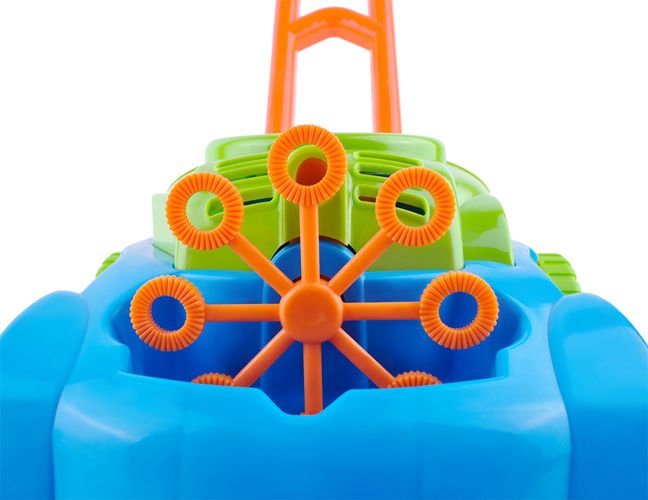 Šis rotaļu zāles pļāvējs patiesībā ir arī foršs burbuļpūtējs. Ir 8 gredzeni, kas
