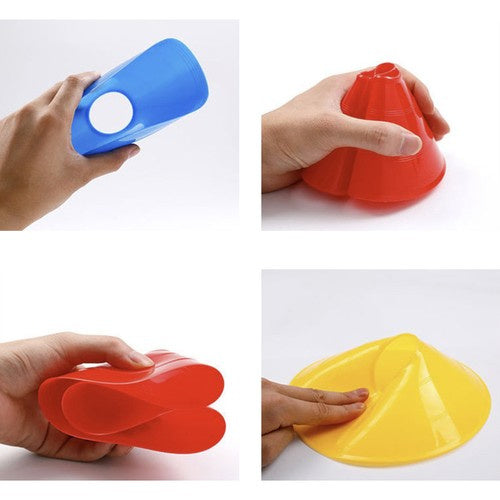 Treniņu konusi – ideāli piemēroti aktivitātēm un vingrojumiem! Materiāla kvalitāte – konusi ir pietiekami izturīgi, lai izturētu intensīvu lietošanu uz dažādām virsmām, garantē to ilgmūžību Stabilitāte – konusi treniņa laikā saglabā stabilitāti pat sarežģītos apstākļos, piemēram, vējā vai lietū Redzamība – pateicoties intensīvajām krāsām, konusi ir skaidri redzami dažādos apgaismojuma apstākļos, palielina drošību treniņa laikā Viegli uzglabāt – konusus var viegli uzglabāt, novietot uz statīva un iepakot somā, kas nodrošina kārtību un ietaupa vietu Daudzpusība – konusi ir piemēroti dažāda veida treniņiem un sporta aktivitātēm, īpaši futbolā, kur tie ir lieliski piemēroti vingrinājumiem, kas uzlabo veiklību, ātrumu un bumbas kontroli. 50 konusu komplekts Treniņu telpas izkārtojums ļauj precīzi noteikt veicamo vingrinājumu apjomu un tādējādi palielina fizisko aktivitāšu efektivitāti. 50 vingrojumu konusu komplekts ļauj noteikt vietas vai zonas, kas ļauj veikt plānoto treniņu ar atbilstošu precizitāti. 5 krāsas 5 treniņu disku krāsas ļauj sadalīt atsevišķiem vingrinājumiem, spēlētājiem vai grupām. Tāpēc vienkāršā, ātrā un ārkārtīgi skaidrā veidā varat sakārtot treniņu telpu. Treniņu konusiem ir intensīvas krāsas: dzeltena, oranža, sarkana, zaļa un zila. Konusi ir elastīgi. Treniņu diski ir elastīgi, tāpēc pat ja uz tiem uzkāpj vai tos atsit, tie netiks bojāti. Mīkstais materiāls nozīmē arī to, ka tie nerada draudus treniņiem. Tie arī nav šķērslis, pār kuru var paklupt. Universālas treniņu sēnes var izmantot uz jebkura veida virsmas. Tās labi darbojas gan uz koka, dabīgā parketa grīdas, gan uz mākslīgā skrejceļa. Tās var izmantot treniņiem uz dabīgā zāliena laukumiem un mākslīgā seguma laukumiem. Tās būs papildinājums profesionāliem vieglatlētikas treniņiem, individuālajām un komandu spēlēm, kā arī fiziskās audzināšanas stundām. Izturīgi pret laikapstākļiem. Stieņi ir izturīgi pret saules gaismu un ūdeni, tāpēc tos var novietot gan smilšainā pludmalē, gan uz slidotavas virsmas. Statīvs iekļauts komplektā. Komplektā ietilpst īpašs statīvs ar rokturi, uz kura var uzglabāt konusus. Tas atvieglo sēņu pārnēsāšanu pa laukumu. Cukurs. Komplektā ietilpst arī praktiska soma konusiem, kas atvieglo to uzglabāšanu, nodrošinot kārtību un lietošanas ērtumu. Komplekta priekšrocības: 50 stabiņi 5 krāsās; statīvs iekļauts komplektā; soma iekļauta komplektā; elastīgs lietošanai laukumā, sporta laukumā, zālē, pludmalē vai uz ledus; vieglatlētikas treniņiem, individuālām un komandu spēlēm; iepakots estētiskā kastē; komplekta specifikācijas: krāsas: sarkana, zila, oranža, zaļa, dzeltena; komplekta izmēri: 20 x 24 cm; 1 konusa izmēri: 20 x 4,5 cm; 1 konusa svars: 20 g; komplekta svars 1 kg; komplekta svars ar iepakojumu: 1,152 kg; Materiāls: konusi (PE), statīvs (PP), soma (dominējošais materiāls: neilons, citi: PP); komplektā iekļauts: 50 stabiņi, statīva soma; krāsaina kaste; brīdinājums: saturs: - turēt tālāk no aizdegšanās avotiem; - lietot paredzētajam mērķim; - lietot produktu tikai drošā un piemērotā vietā; - nav ieteicams lietot bojātu produktu.