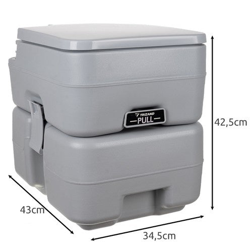 Pārnēsājama modulāra tūristu tualete - tualetes augšējā daļa (ūdens tvertne, sēdeklis un skalošanas mehānisms) - tā darbojas kā ūdens tvertne, kuras tilpums ir 12 litri. Tas ļauj vairākkārt noskalot atkritumus, kas ir ļoti svarīgi ilgstošas lietošanas laikā. Skalošanas ūdens tiek piegādāts, izmantojot sūkni, kas atrodas tualetes iekšpusē kreisajā pusē. Skalošanas mehānismu iedarbina, atbloķējot sūkni, pārvietojot kustīgo gredzenu un pēc tam paceļot un nolaižot virzuli, kas efektīvi ieskalo atkritumus apakšējā tvertnē. Tualete ir aprīkota ar lielu atveri centrā, kas ļauj atkritumiem brīvi ieplūst apakšējā tvertnē. Tualetes sēdekļa labajā pusē ir pieskrūvējama ieplūde ūdenim un skalošanas ķimikālijām, un blakus tai ir rokturis, kas atvieglo tualetes augšējās daļas pārnešanu pēc tās noņemšanas. Tualetei ir cieši pieguļošs, kustīgs sēdeklis un atloks, kas efektīvi novērš nepatīkamu smaku izdalīšanos, kas ir svarīgs lietošanas komforta elements. Tualetes apakšējā daļa (atkritumu tvertne) — tās ietilpība ir 20 litri, kas ļauj tualeti lietot ilgāk, to bieži neiztukšojot. Tvertne ir cieši noslēgta, un atkritumi tiek izvadīti caur lielu atveri, kas nostiprināta ar silikagela pārklātu atloku, kas papildus novērš noplūdes un nepatīkamas smakas. Lai iztukšotu augšējo tvertni, vienkārši izmantojiet "vilkšanas" rokturi, kas atrodas tualetes priekšpusē. Notekas caurums atrodas tualetes aizmugurē un ir nostiprināts ar cieši noslēdzamu vāciņu, kas garantē higiēnisku tvertnes iztukšošanu. Turklāt atverē ir rokturis, kas atvieglo apakšējās tvertnes pārnēsāšanu un manipulācijas ar to. Izmērs — kompakts un viegls, sver tikai 4,3 kg, kas ļauj to ērti pārnēsāt un uzglabāt. Neskatoties uz mazo svaru, tualetes celtspēja ir līdz 120 kg, padarot to par stabilu un stabilu risinājumu dažādiem lietotājiem. Izgatavots no augstas kvalitātes HDPE materiāla, tas ir izturīgs, noturīgs pret mehāniskiem bojājumiem un laikapstākļiem, kas ļauj to lietot ilgstoši. Hermētiskums un drošība — pārnēsājamā tualete ir izstrādāta, lai nodrošinātu maksimālu lietotāja aizsardzību no nepatīkamām situācijām, kas saistītas ar tās lietošanu. Apakšējās daļas vidū ir liela atvere, caur kuru atkritumi ieplūst tvertnē. Šī atvere ir nostiprināta ar speciālu atloku, kas pārklāts ar silikagelu, kas papildus palielina hermētiskumu un novērš nepatīkamu smaku nokļūšanu ārpusē. Apakšējās tvertnes aizmugurē ir liela atvere, kas nostiprināta ar cieši noslēdzamu vāciņu. Šī atvere ļauj ātri un droši iztukšot tvertni no atkritumiem. Specifikācija: krāsa: pelēka; materiāls: HDPE, ABS, PP, gumija; atkritumu tvertnes tilpums: 20 l; ūdens tvertnes tilpums: 12 l; kravnesība: 150 kg; izmēri: 42,5 x 34,5 x 43 cm; iekšējais sēdekļa diametrs: 25,5 x 22 cm; svars: 4,3 kg; Svars iepakojumā: 5,1 kg Specifikācija: Krāsa: pelēka Materiāls: HDPE, ABS, PP, gumija Atkritumu tvertnes tilpums: 20 l Ūdens tvertnes tilpums: 12 l Kravnesība: 150 kg Izmēri: 42,5 x 34,5 x 43 cm Iekšējais sēdekļa diametrs: 25,5 x 22 cm Svars: 4,3 kg Svars iepakojumā: 5,1 kg Tīrīšana un apkope Kempinga tualetes, piemēram, šīs, izmanto īpašus šķidrumus, lai uzturētu higiēnu, likvidētu nepatīkamas smakas un palīdzētu sadalīt atkritumus. Pārnēsājamā tualete ir ārkārtīgi daudzpusīga ierīce, ko var izmantot dažādās vietās un situācijās. Tā ir ideāli piemērota kempingam, bivakam, pārgājieniem vai uz zemes gabala. Tā ir arī neaizstājama ārkārtas situācijās, kad piekļuve tradicionālajai tualetei ir ierobežota. To var izmantot arī laivās, kemperos un pat būvlaukumos. Pārnēsājamā tualete ir arī neaizstājama kanalizācijas avārijas gadījumā mājā. Pateicoties kompaktajam dizainam un vieglajai transportēšanai, pārnēsājamā tualete ir ideāls risinājums jebkuram ceļojumam, kur komforts un higiēna ir prioritāte. Pārnēsājamā tualete ir praktisks un funkcionāls risinājums, kas labi darbojas dažādos apstākļos gan ceļojumu, kempinga laikā, gan mazdārziņos, gan ārkārtas situācijās. Tualete sastāv no divām atsevišķām tvertnēm - ūdenim un notekūdeņiem, kas nodrošina lietošanas komfortu un higiēnu. Pārnēsājamā tualete ir ne tikai ērts, bet arī uzticams risinājums, kas darbosies daudzos dažādos apstākļos, nodrošinot higiēnu un komfortu neatkarīgi no jūsu atrašanās vietas. Brīdinājuma saturs: - lietojiet to paredzētajam mērķim. - nelietojiet tualeti, ja tā ir bojāta vai nedarbojas pareizi. Pirms turpmākas lietošanas salabojiet vai nomainiet nolietotās vai bojātās detaļas. - sēžot uz tualetes, vienmēr izmantojiet sēdekli. Sēdēšana tieši uz skalošanas tvertnes malas var radīt bojājumus vai traumas. - nekādā gadījumā nestāviet uz tualetes. - neatbalstieties pret tualeti. - nenovietojiet uz tualetes vairāk par 150 kg. - glabājiet stabilā stāvoklī. Tualete jānovieto uz līdzenas, stabilas virsmas. Lietošana uz nelīdzenas virsmas var izraisīt tualetes apgāšanos, kas varētu būt nehigiēniski un bīstami. - pārnēsājamā tualete regulāri jātīra un jādezinficē, lai novērstu baktēriju augšanu un nepatīkamas smakas. Tīrīšana jāveic saskaņā ar instrukcijām, vēlams, izmantojot tam paredzētus tīrīšanas līdzekļus. - Regulāri jāpārbauda blīves un savienojumi, lai novērstu iespējamās noplūdes. Jebkādi blīvējumu bojājumi vai noplūdes jāsalabo pirms atkārtotas tualetes lietošanas.