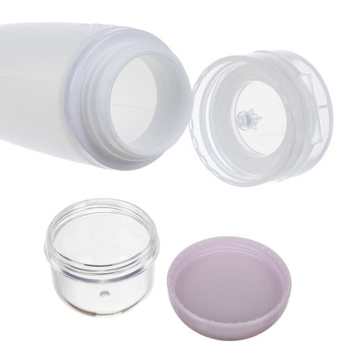 Ideāls lidmašīnas komplekts jebkuram ceļojumam — trauki ir atbilstoša izmēra, lai visu nepieciešamo kosmētiku ceļojumam, šampūnu, krēmu, zobu pastu, varētu ievietot vienuviet; materiāla izturība — pudeles ir izgatavotas no mīksta materiāla, kas transportēšanas laikā neplīst un netiks bojāts, jūsu kosmētika netecēs; hermētiskums — trauki ir hermētiski, kas novērš kosmētikas noplūdi ceļojuma laikā, pasargājot bagāžu no sasmērēšanās; atbilstība noteikumiem — komplekts atbilst rokas bagāžas noteikumiem, īpaši attiecībā uz kosmētikas ietilpību lidmašīnās, kas atvieglo reģistrāciju; lietošanas ērtums — traukus ir viegli lietot, atvērt un aizvērt, kā arī ērti uzglabāt, kas nodrošina komfortu ceļojuma laikā; estētika — komplektam ir pievilcīgs dizains, kas jums patiks, apvieno funkcionalitāti un stilu; liels komplekts; komplektā ietilpst: caurspīdīga kosmētikas soma; 4 elastīgas pudeles; 3 pieskrūvējami trauki; 2 zobu birste, kas visu aptver vienuviet; komplekts sastāv no 10 elementiem. Hermētiski noslēdzami trauki saturēs visu nepieciešamo kosmētiku, ko ievietosiet caurspīdīgā kosmētikas somā. Kosmētikas soma ar rāvējslēdzēju; rāvējslēdzējs nodrošina drošu aizvēršanu, aizsargājot saturu no nejaušas izliešanas vai piesārņojuma. 4 elastīgas pudeles pa 100 ml, katra pudele ir aprīkota ar cieši noslēdzamu vāciņu, kas novērš kosmētikas noplūdi, nodrošinot bagāžas drošību. Pudeļu ietilpība ir 100 ml, tās ir ideāli piemērotas šampūnu, kondicionieru, veļas mazgāšanas šķidrumu un citu kopšanas līdzekļu uzglabāšanai. Pateicoties elastīgajam dizainam, var viegli izspiest pareizo kosmētikas daudzumu, kas padara tās ārkārtīgi ērtas lietošanā. 3 skrūvējami krēma konteineri pa 20 ml, katrs konteiners ir aprīkots ar cieši noslēdzamu vāciņu, kas efektīvi novērš krēma noplūdi. Konteineru izmērs ir piemērots iecienītāko sejas krēmu, ķermeņa krēmu vai losjonu uzglabāšanai, ļaujot tos ņemt līdzi, lai kurp jūs dotos. Skrūvējamie vāciņi ļauj tos viegli atvērt un aizvērt, kas padara piekļuvi kosmētikai ātru un ērtu. 2 zobu birstes uzlikas efektīvi aizsargā birstes sarus no piesārņojuma un baktērijām, nodrošinot tīrību un svaigumu starp lietošanas reizēm. Tās ir piemērotas standarta zobu birstēm, padarot tās par daudzpusīgu risinājumu ikvienam lietotājam. Uzgaļus var ātri uzlikt un noņemt, padarot ikdienas lietošanu vieglāku, īpaši ceļojot. Komplekta specifikācijas: pudeles tilpums: 100 ml trauka tilpums: 20 ml izmēri: 14 x 15,5 x 5 cm svars: 0,14 kg svars iepakojumā: 0,17 kg kosmētikas soma krāsa: caurspīdīga Materiāls: PVC, cinka sakausējums, neilons, silikons, PP komplektā iekļauts: 4 pudeles 3 krēma trauciņi 2 otu uzgaļi kosmētikas somai brīdinājums saturs: - lietot paredzētajam mērķim. - rūpēties par kosmētikas somas rāvējslēdzējiem un aizvēršanas mehānismiem. ja kosmētikas somai ir aizvēršanas elementi, lietotājam regulāri jāpārbauda to tehniskais stāvoklis, lai izvairītos no bojājumiem lietošanas laikā. - kosmētikas soma regulāri jātīra saskaņā ar instrukcijām, lai tā būtu labā stāvoklī. atkarībā no materiāla var būt nepieciešams izmantot īpašus tīrīšanas līdzekļus vai izvairīties no mazgāšanas veļas mašīnā.