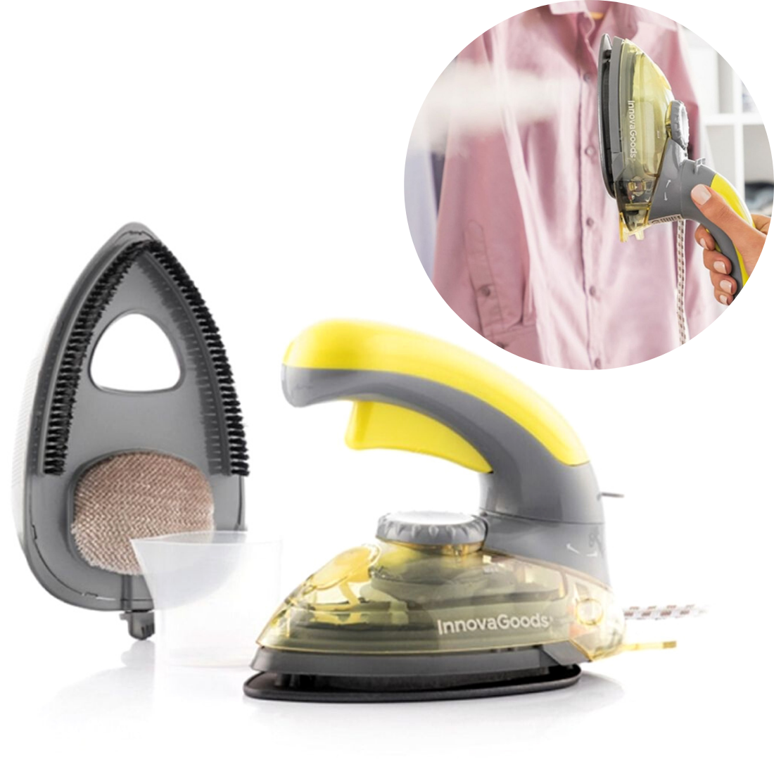 Kompakts un pārnēsājams mini tvaika gludeklis ar oriģinālu 2-in-1 dizainu, ko var izmantot kā vertikālu gludekli un kā tradicionālu horizontālu gludekli, vienkārši pagriežot rokturi vēlamajā pozīcijā (180º). Gludeklis ir ļoti ērts un viegli lietojams, kā arī viegli transportējams un glabājams. Tam ir tvaika funkcija un temperatūras regulēšanas iespēja (80-200 ºC). Tā ietilpība ir 80 ml un jauda 800 W. Komplektā ir iekļauti vairāki ļoti noderīgi piederumi, piemēram, mērglāze ūdens tvertnes uzpildīšanai, neliela tīrīšanas birste un noņemama galviņa, kas ir ideāli piemērota apģērbam, polsterējumam utt.