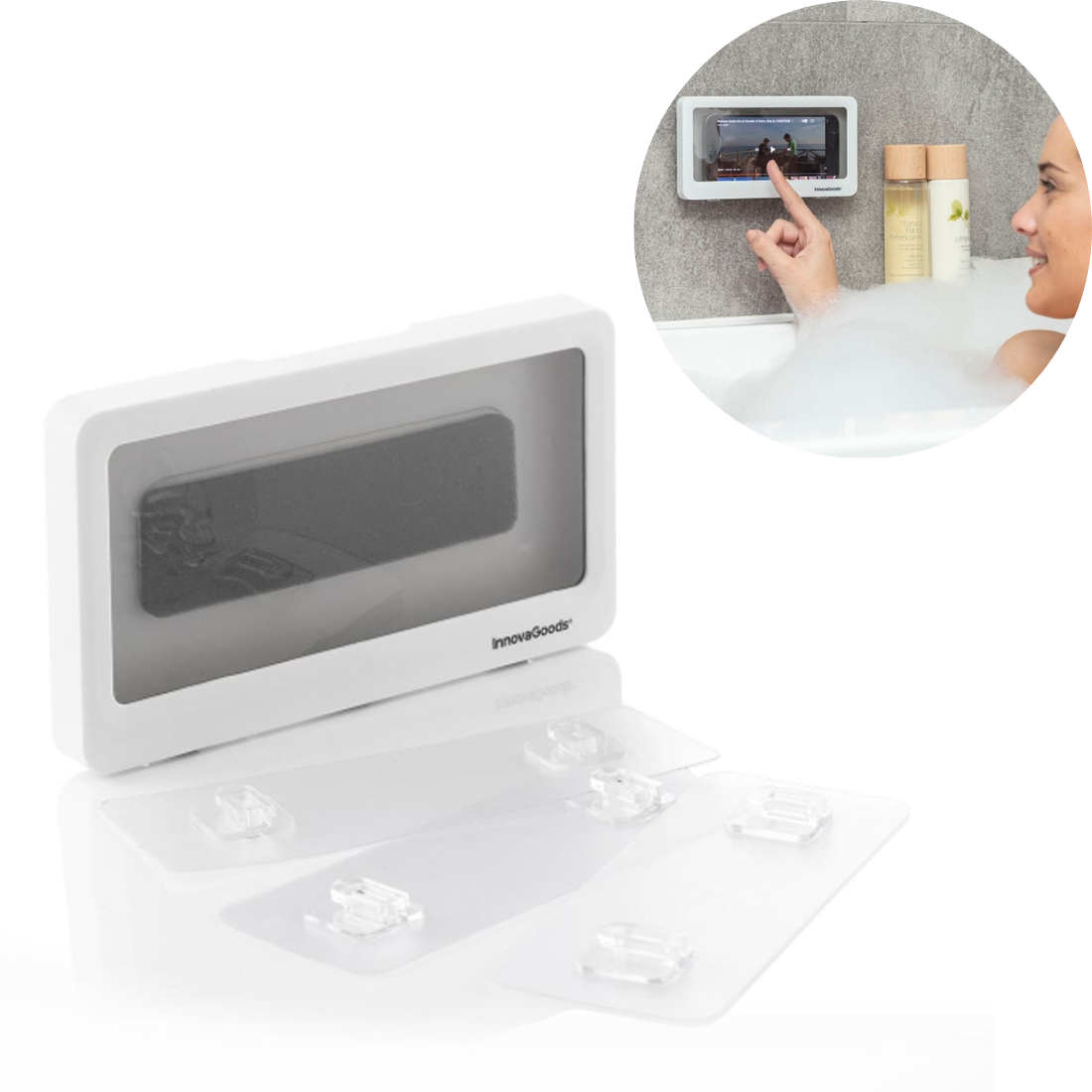Daudzpusīgs ūdensnecaurlaidīgs viedtālruņa sienas turētājs, kas ļauj ērti lietot mobilo tālruni dušā vai vannā, nebaidoties no tā samirkšanas. Lieliski piemērots vannas istabai, lai gan tas ir ļoti noderīgs arī virtuvē, jo to var novietot netālu no izlietnes, lai jūs varētu lietot mobilo tālruni, mazgājot traukus utt. Tas neļauj tvaikam un ūdenim iekļūt un ietekmēt mobilā tālruņa lietošanu, tāpēc tas ir ideāli piemērots mierīgai atpūtai un video, seriālu, filmu, mūzikas klausīšanās u.c. baudīšanai. Tas ir viegli piestiprināms pie sienas bez montāžas vai instrumentiem, jo ietver 3 izturīgas līmlentes, lai ērti novietotu turētāju, kur vien vēlaties. Kvalitatīvas līmlentes nodrošina stingru noturību un nebojā virsmu. Šis oriģinālais telefona turētājs ir piemērots lielākajai daļai mobilo tālruņu (maksimums līdz 7”). Tā 60º fiksētā drošības atvere neļauj mobilajam tālrunim izslīdēt un nokrist, to ievietojot vai izņemot no korpusa. Caurspīdīgais skata logs ir skārienjūtīgs vienkāršai un optimālai lietošanai, kas ļauj regulēt skaļumu un veikt citas funkcijas, neizņemot tālruni no turētāja. Tam ir arī pretmiglas īpašības, tāpēc tas neaizsvīst, kas ļaus jums skaidri redzēt tā saturu.