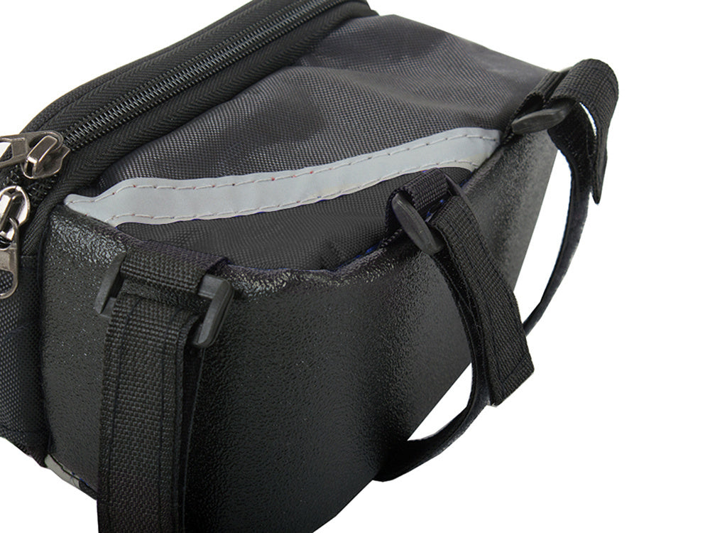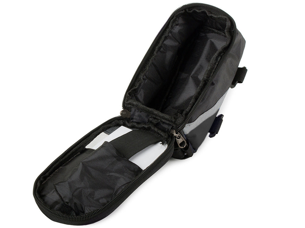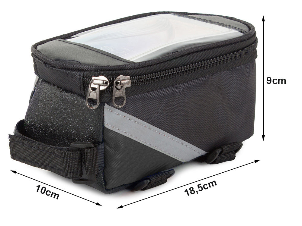 Ūdensizturīgs velosipēda somas un telefona turētāja pārvalks. Ūdensizturīgs velosipēda rāmja soma, noderīga ikvienam vienriteņa lietotājam. Maza, ērta soma, kurā varam paslēpt mazus aksesuārus, piemēram, telefonu, atslēgas, maku. Pateicoties šim risinājumam, mums nav jāņem līdzi papildu mugursoma vai rokassoma. Soma kalpos gan kā nodalījums ērtām lietām, gan vienlaikus kā telefona pārsegs. Soma ir izgatavota no izturīga materiāla. Ērta lietošanā, tā ļauj bez problēmām izmantot visas telefona funkcijas, braucot ar velosipēdu. Tā ir piestiprināta pie velosipēda rāmja ar regulējamām Velcro siksnām. Var ievietot ierīces līdz maks. 6,8 collām, ar atstarojošu joslu, lai palielinātu drošību uz ceļa. Tehniskās specifikācijas: - izgatavots no augstas kvalitātes materiāliem - Velcro stiprinājums pie rāmja - regulējamas Velcro siksnas - nodalījums ar rāvējslēdzēju - ērts dubultais rāvējslēdzējs - papildu nodalījums sānos - caurspīdīga priekšpuse - ūdensizturīgs - ar atstarojošām joslām - telefoniem līdz maks. 6,8 collām - krāsa: pelēka - izmēri: komplektā ietilpst: - velosipēda soma - folijas iepakojums