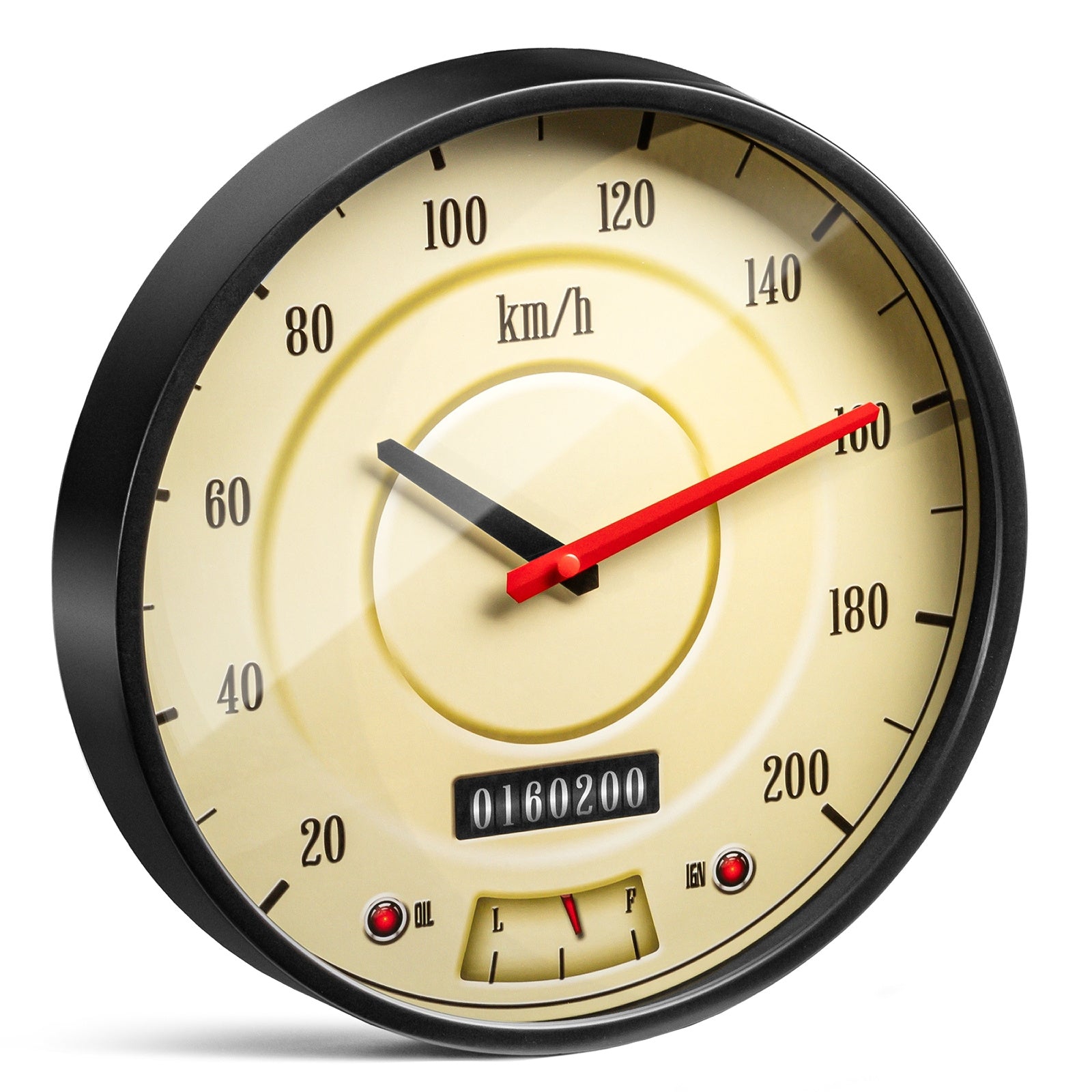 Iedomājieties, ka sēžat skaistā, klasiskā automašīnā. Uz paneļa redzat elegantu, retro spidometru. Tagad iedomājieties to pašu spidometru... karājamies pie sienas. Lūk, pulkstenis, kas ne tikai rāda laiku, bet dara to ar stilu, kas varētu likt kaunēties pat Rolls-Royce ;) Stikla vāks? Gluds kā sacīkšu trases asfalts. Ciparnīca? Skaidrs, precīzs un raksturīgs, gluži kā Ferrari 250 GTO. Rādītāji? Perfekti izlīdzināti, kustas graciozi, it kā tie tikko būtu veikuši nevainojamu apļa laiku Nirburgringā. Un pats labākais: jums nav nepieciešams rūcošs V12 dzinējs, lai to darbinātu. Tikai viena pieticīga AA baterija, jo šis pulkstenis ne tikai rāda laiku — tas dara to stilīgi. Klusi (pateicoties klusajam mehānismam), gandrīz kā čukstot: "Laiks nav viss, bet gan stils." Vai tas ir praktiski? Jā. Vai tas izskatās pārsteidzoši? Pilnīgi noteikti. Vai tas ir tik ātrs, cik izskatās? Nu, tehniski, nē. Bet vai tam ir nozīme, ja katrs skatiens uz to liek jums vēlēties nospiest gāzes pedāli? Šis nav tikai pulkstenis. Tas ir auto vēstures gabaliņš jūsu sienai. Īpašības: pulkstenis, kas veidots kā retro spidometrs; stilīgs, nostalģisks un absolūti satriecošs; sagādā prieku jebkuram auto entuziastam; kluss mehānisms, lai mērītu... nu, laiku, nevis ātrumu :); fantastiska dāvana jebkuram gadījumam, ne tikai auto entuziastiem; izmēri: diametrs 29,5 cm, dziļums 4,5 cm; barošanas avots: 1 AA baterija (nav iekļauta); iepakots elegantā dāvanu kastītē.
