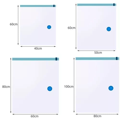 Vakuuma maisiņu komplekts 10 gab. 4 izmēri vietu taupošs - vienkārši iepakojiet priekšmetus maisiņā. Vakuuma maisiņš pēc gaisa izsūknēšanas ar parastu putekļsūcēju samazina tā tilpumu līdz pat 80%. Tas ļauj ietaupīt daudz vietas. Ļoti laba drošība - uzglabātās lietas ir lieliski aizsargātas no putekļiem, netīrumiem, ūdens, mitruma vai kodēm. Visu, ko ievietojat maisiņā, var uzglabāt pagrabā, bēniņos vai garāžā, un drēbes netiks sabojātas un nekļūs nepatīkamas smakas. Universāls lietojums - ideāli piemērots pārcelšanās laikā, bet ideāli piemērots arī sezonas apģērbu vai gultasveļas glabāšanai. Tas ir lieliski piemērots ceļojumiem, ja čemodānā ir maz vietas, bet nepieciešams daudz drēbju. Atkārtoti lietojams - maisiņus var izmantot vairākas reizes. Tie nezaudēs savas īpašības pēc lietošanas. Pēc izņemšanas no maisiņa drēbes joprojām ir svaigas un smaržīgas! Specifikācija - materiāls: pa, citi: HDPE + silikons; krāsa: caurspīdīgi zila; izmēri: (platums garums) 40x60 – 4 gab.; (platums garums) 50x60 – 3 gab.; (platums/garums) 60x800 - 2 gab.; (platums/garums) 80x100 - 1 gab.; svars: 0,673 kg; svars iepakojumā: 0,778 kg. specifikācija: Materiāls: pa, citi: HDPE + silikons; krāsa: caurspīdīgi zila; maisiņu skaits: 10 gabali 4 izmēros; (platums/garums) 40x60 - 4 gab. (platums/garums) 50x60 - 3 gab. (platums/garums) 60x80 - 2 gab. (platums/garums) 80x100 - 1 gab. svars: 0,673 kg; svars iepakojumā: 0,778 kg. komplektā ietilpst: 10 maisiņi 4 izmēros; 10 rāvējslēdzēji maisiņu aizvēršanai. 10 daļu vakuuma maisiņu komplekts ir atkārtoti lietojams. uzglabātās mantas ir lieliski aizsargātas no putekļiem, netīrumiem, ūdens, mitruma un kodēm. apģērbs, kas uzglabāts bez piekļuves gaisam, ilgāk izskatās kā jauns. lai izsūktu gaisu, vienkārši izmantojiet parastu putekļsūcēju. Tas ļaus ietaupīt daudz vietas. Brīdinājuma saturs: 1. Lai nodrošinātu drošību, glabājiet vakuuma apģērbu maisiņus bērniem un mājdzīvniekiem nepieejamā vietā. 2. Pirms apģērba ievietošanas maisos pārliecinieties, vai tie ir tīri un sausi, lai izvairītos no pelējuma vai citu kaitīgu vielu/mikroorganismu veidošanās. 3. Neizmantojiet vakuuma apģērbu maisiņus pārtikas vai priekšmetu uzglabāšanai, kas var piesārņot apģērbu. 4. Neievietojiet maisos asus priekšmetus, jo tie var sagriezt vai sabojāt vakuuma maisiņus un izraisīt vakuuma zudumu. 5. Vienmēr pārliecinieties, vai maisiņi ir pareizi aizvērti un noslēgti, lai novērstu gaisa iekļūšanu. 6. Regulāri pārbaudiet vakuuma apģērbu maisiņu stāvokli, vai tie nav bojāti, lai izvairītos no nejaušas noplūdes un saglabātu to efektivitāti.