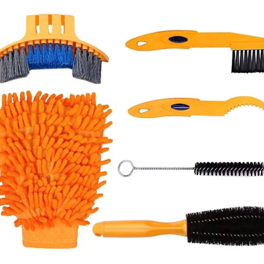• Praktisks 6 birstīšu komplekts velosipēda mazgāšanai un kopšanai.