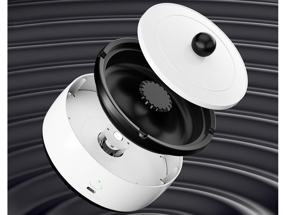 Viedais automašīnas pelnutrauks — pašdzēsošs bezdūmu tīrītājs. Piedāvājam elektrisko bezdūmu pelnutrauku, kas ne tikai palīdz uzturēt tīrību, bet arī nodrošina svaigu gaisu bez tabakas dūmu radītiem traucējumiem. Mūsu pelnutrauks ir ideāls risinājums smēķētājiem, kuri vēlas atpūsties, smēķējot cigareti, negatīvi neietekmējot vidi. Aprīkots ar īpašu aromāta kārtridžu, pelnutrauks izdala maigus aromātus, kas maskē tabakas dūmu smaku un piešķir svaigumu apkārtējai videi. Tagad jūs varat baudīt patīkamu smēķēšanas pieredzi, neuztraucoties par nepatīkamu smaku. Pateicoties pārnēsājamajam dizainam, mūsu elektriskais pelnutrauks ir lieliski piemērots gan mājās, gan ceļojumos ar automašīnu. Tagad jūs varat baudīt tīru gaisu un smēķēšanas relaksāciju pat ceļojuma laikā. Tehniskās specifikācijas: — augsta konstrukcijas kvalitāte — apgaismota poga — moderns dizains — automātiska izslēgšanās — pēc aptuveni 6 minūtēm — viegli tīrāms — aromāta uzpilde — izmēri: — barošanas avots: uzlādējams — uzlādējams akumulators: — uzlādes laiks: — uzlādējama akumulatora darbības laiks vairāk nekā 30 lietošanas reizēm — krāsa: balta — produkts ir CE sertificēts. Komplektā ietilpst: — viedais pelnutrauks — aromāta kārtridžs — USB kabelis