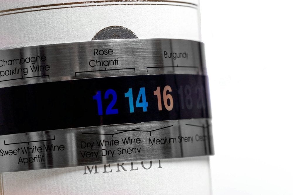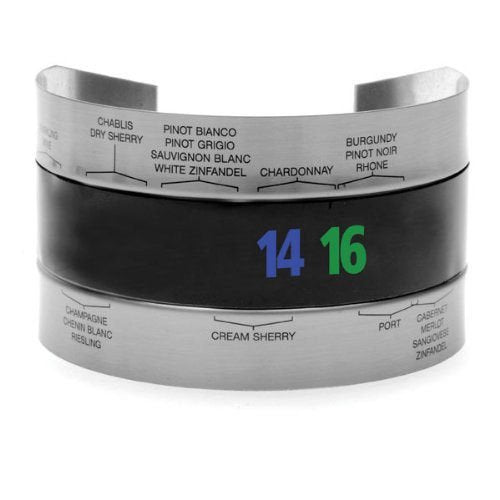 Termiskā lente parāda vīna pudeles temperatūru un iesaka labāko pasniegšanas temperatūru lielākajai daļai vīnu. Nerūsējošā tērauda gredzens - Elastīga lente, kas piemērota jebkura izmēra pudelei - Vairs nav nepareizi pasniegtu dzērienu (rāda temperatūru no 4 līdz 24 C grādiem) - Nav akumulatora nepieciešams - Izmērs 3,5 augsts x 10 cm.
