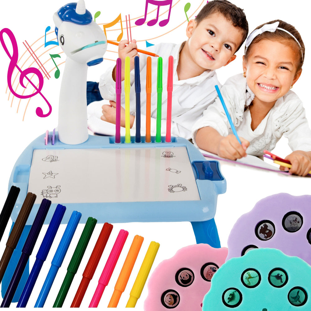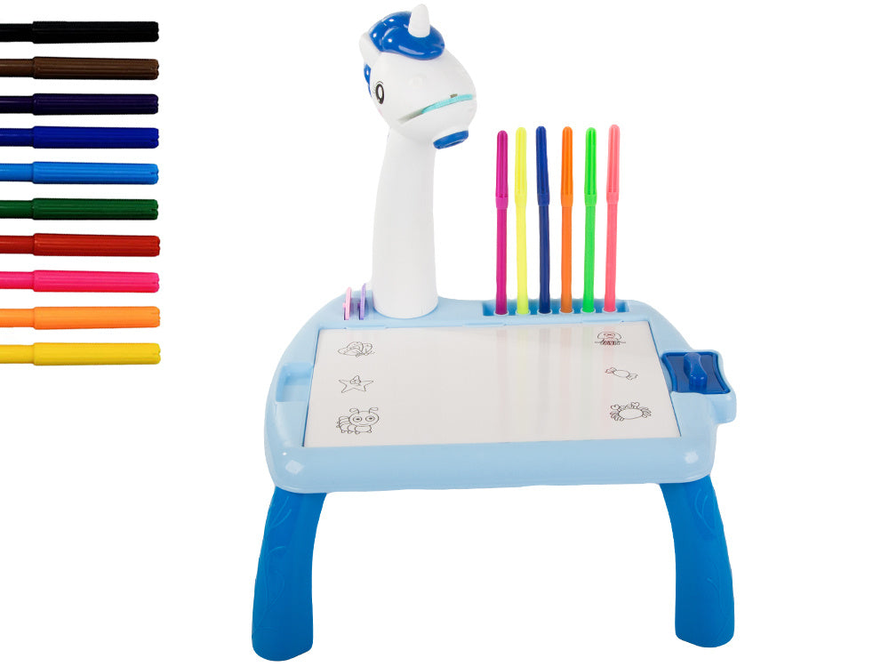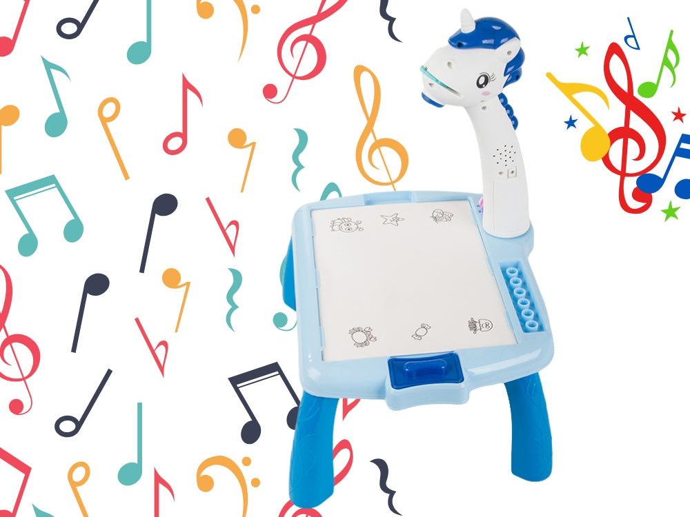 Projektora virsprojektora zīmēšanas galds, baltā tāfele, marķieri bērniem, marķieri, zīmēšanas galds, izglītojošais projektors, zils? Izglītojošs bērnu galds ar projektoru - radoša izklaide un mācīšanās, sagādājiet savam bērnam neaizmirstamus radošas izklaides mirkļus! Izglītojošais galds ar projektoru un skaņas funkciju ir ideāla rotaļlieta mazajiem māksliniekiem, kuriem patīk zīmēt, gleznot un iepazīt krāsu pasauli. Pateicoties iebūvētajam projektoram, jūsu bērns var viegli izsekot projicētajiem attēliem, klausoties jautrās melodijās, kas attīsta roku prasmes, iztēli un ritma izjūtu. Radoša mācīšanās rotaļājoties Projektora galds ļauj jūsu bērnam iemācīties zīmēt, pārvelkot attēlotās formas un attēlus. Iebūvētās melodijas pavada laiku, radot priecīgu atmosfēru rotaļājoties. Drošība un izturība, izgatavota no augstas kvalitātes, bērniem drošiem materiāliem. Gludas malas un stabila konstrukcija nodrošina ērtu un drošu lietošanu. Ideāli piemērots mācībām un spēlēm Izglītojošais galds ir ideāli piemērots gan patstāvīgām spēlēm, gan zīmēšanai kopā ar vecākiem vai brāļiem un māsām. Ar savu mūzikas funkciju tas rada priecīgu atmosfēru, kas veicina mācīšanos un radošumu. Galda piederumu organizators Galdam ir nodalījumi marķieriem un ripām - ērtas vietas piederumu organizēšanai, lai tie vienmēr būtu pa rokai. Zīmēšanas projektors bērniem — radoša iztēles spēle! Zīmēšana ir viena no katra bērna iecienītākajām rotaļu formām. Ar šo projektoru mazie mākslinieki var radīt neparastus attēlus, izmantojot gaismu, attīstot savu radošumu un manuālās prasmes. Ir ne tikai jautri reproducēt rakstus — bērni var pievienot savus elementus, fonus un tēlus, lai radītu īstus mākslas darbus! ? Kas ir komplektā? ➡️ ar dažādiem rakstiem — katrs no tiem satur tematiski grupētus: ?dinozauri, ? tēli, ? varoņi. Kopumā bērns var iemācīties uzzīmēt tik daudz vai izveidot interesantas kolāžas, apvienojot elementus no dažādiem slaidiem. ? stimulē iztēli un mākslinieciskos talantus. Projektors sniedz neierobežotas iespējas radošai rotaļai — bērni var pārvilkt gatavus rakstus vai pievienot savas idejas, lai radītu unikālas kompozīcijas. Tas ir lielisks veids, kā attīstīt mākslinieciskās prasmes, telpisko iztēli un motorisko koordināciju. ? no pirmajiem soļiem līdz lielām aizrautībām jau no mazotnes meitenes un zēni var attīstīt savus mākslinieciskos talantus. iespējams, šī rotaļīgā nodarbe kļūs par aizraušanās sākumu, kas nākotnē pāraugs mākslinieka profesijā, mākslinieka profesijā vai dzīves hobijā. ? Kā lietot projektoru, ieslēdzot gaismu un melodiju: ➡️ Lai ieslēgtu rotaļlietu, pagrieziet vienradža ragu. ✔ Viens pagrieziens - ieslēdz projektora gaismu. ✔ Otrais pagrieziens - aktivizē jautrās melodijas kopā ar gaismu. Slaidu novietojums: ➡️ Tieši zem vienradža galvas ir vieta attēlu diskam. Ievietojiet izvēlēto slaidu, lai sāktu zīmēšanas jautrību. Projektora regulēšana: ➡️ Projektoram ir regulējama galva, ko var pārvietot uz augšu un uz leju, un visa roka griežas pa kreisi un pa labi. Tas atvieglo gaismas leņķa pielāgošanu zīmēšanas virsmai. Zīmēšana soli pa solim: ➡️ Kad projektors ir ieslēgts, izvēlētais attēls parādīsies uz galda vai piezīmju grāmatiņas virsmas. ➡️ Bērns to var uzzīmēt tieši uz papīra lapas vai uz speciālas pamatnes. Zīmējuma dzēšana: ➡️ Ja zīmējums ir uzzīmēts uz galda pamatnes, to var viegli noslaucīt ar pievienoto sūkli, lai atsāktu spēlēšanos. - tehniskās specifikācijas: ✔ produkta kods: ✔ izgatavots no augstas kvalitātes materiāliem ✔ materiāls: plastmasa ✔ maināmi diski: jā, 3 tematiskas - dinozauri, tēli un varoņi ✔ diski: ✔ izglītojoši raksti uz 3 diskiem ✔ krāsains un pievilcīgs dizains ✔ nakts apgaismojuma funkcija ✔ pat 24 raksti zīmēšanai ✔ ideāli piemērota kā dāvana ✔ var atskaņot jebkur ✔ iespēja iekļaut melodiju ✔ nodalījumi marķieriem un diskiem ✔ funkcija: projektors ar rakstu attēlošanu un melodijas atskaņošanu ✔ funkcijas: projektors ar rakstu attēlošanu un melodijas atskaņošanu ✔ barošanas avots: ✔ izmēri: ✔ krāsa: zila ? Komplektā ietilpst: ✔ galds ar projektoru ✔ zīmēšanas burtnīca ✔ sūklis dzēšanai ✔ oriģinālais iepakojums
