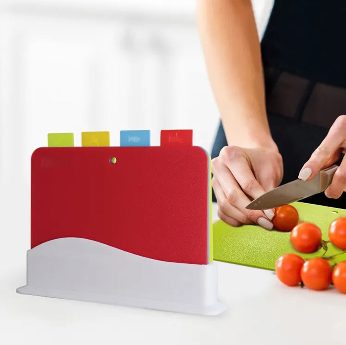 palīdzētu novērst baktēriju pārnešanu, katrs griešanas dēlis ir norādīts