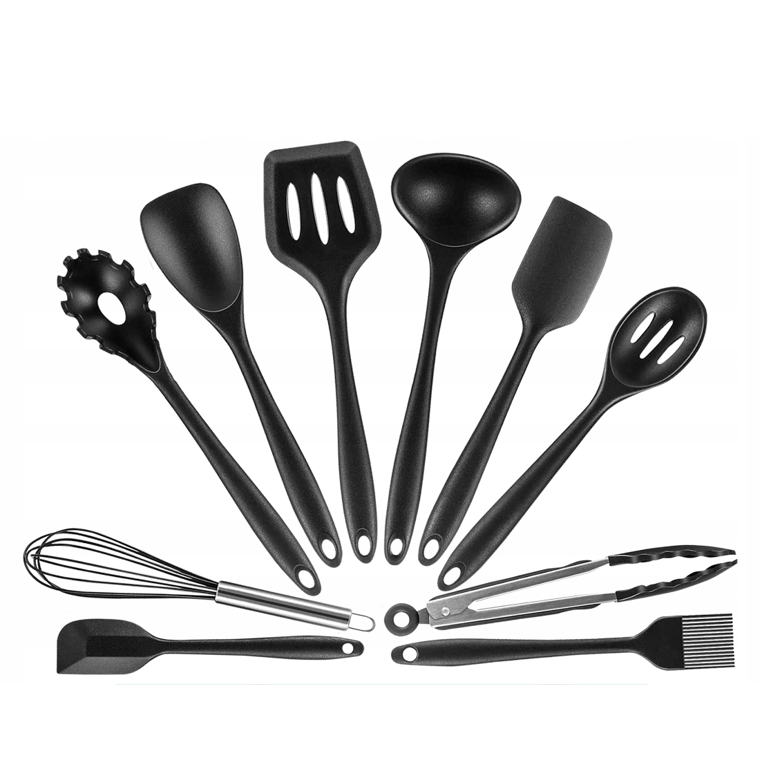 – Ietver knaibles, putotāju, otu, salātu karoti, lielo lāpstiņu, universālo karoti, makaronu karoti, mazo lāpstiņu, krūzīti un plakanu lāpstiņu.