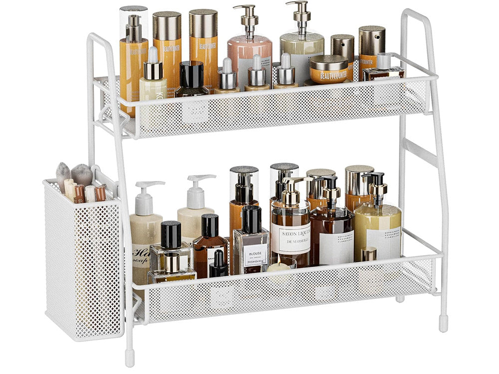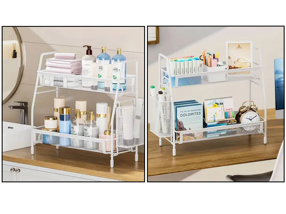 Virtuves plaukts bēniņu virtuves organizators divstāvu statīvs ar grozu