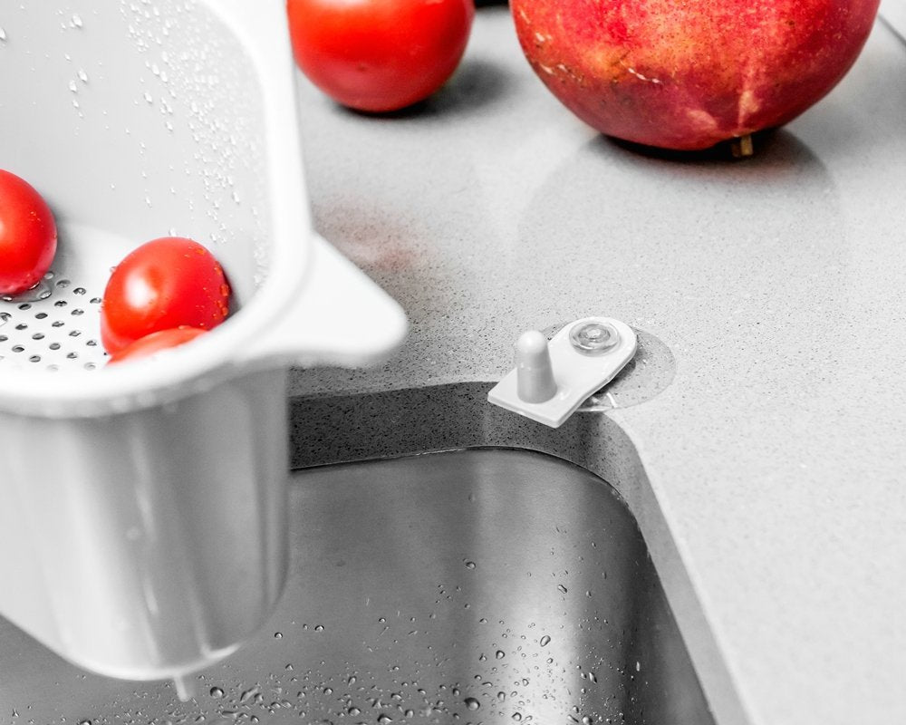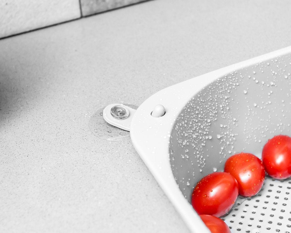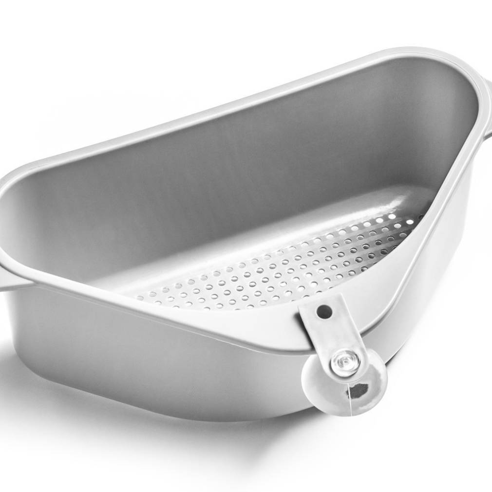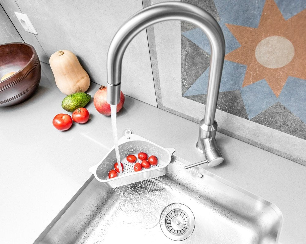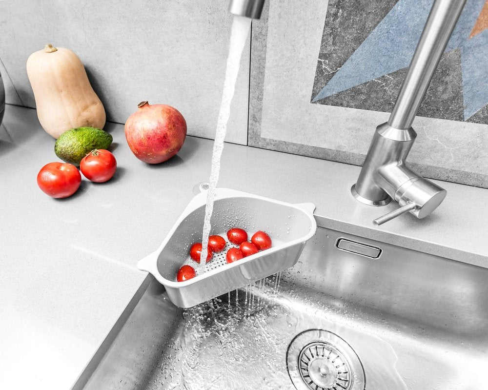 Virtuves trīsstūrveida izlietnes sietiņš, kanalizācija un sūkļa turētājs vienā. Funkcijas: - praktisks virtuves izlietnes sietiņš & amp; notekas - Doba konstrukcija, ātra notecēšana, piesūcekņa stiprinājums, spēcīga nestspēja - noņemama, viegli tīrāma - iek. 1 piesūcekņi - materiāls: labas kvalitātes ABS - krāsa: pelēka - 1 gab