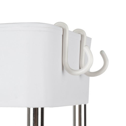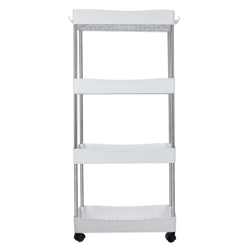 Mobilais virtuves/tualešu plaukts uz riteņiem, elegants dizains - izgatavots no augstas kvalitātes PP (polipropilēna) materiāla, plaukts apvieno izturību un vieglumu, kas padara to viegli pārnēsājamu un izturīgu pret mitrumu un skrāpējumiem. Katram plauktam ir lāzergriezta apakšdaļa ziedu rakstā ar sirds formas ziedlapiņām, kas piešķir smalku šarmu un padara to par dekoratīvu elementu vannas istabā. Raksts ne tikai uzsver estētiku, bet arī nodrošina labāku gaisa cirkulāciju, kas ir svarīgi mitrā vannas istabas vidē. Ciets savienojums - saskaņoti plauktu elementi ir savienoti viens ar otru, izmantojot perfekti saskaņotus savienotājus, kas izgatavoti no augstas kvalitātes nerūsējošā tērauda. Pateicoties tam, konstrukcija ir stabila un izturīga, un plauktā var viegli ievietot dažādus vannas istabas piederumus, kosmētiku vai tīrīšanas līdzekļus. Komplektā ietilpst arī četri balti vāciņi, kas tiek izmantoti, lai nostiprinātu caurumus, kuros tiek ievietoti savienotāji. Šie vāciņi ne tikai uzlabo plaukta estētiku, bet arī novērš putekļu un mitruma iekļūšanu savienotāju iekšpusē, kas palielina visas konstrukcijas izturību. Praktiski āķi - vannas istabas plauktam ir arī četri āķi, kas izgatavoti no PP materiāla, kurus var viegli piestiprināt pie plauktu malām. Šie āķi ir ideāla vieta dvieļu, sūkļu, birstu vai citu mazu vannas istabas piederumu pakarināšanai, kas vēl vairāk palielina plaukta funkcionalitāti. Papildu plaukta priekšrocība ir četri rotējoši riteņi, kas ļauj to brīvi pārvietot. Riteņi griežas par 360 grādiem, kas nodrošina maksimālu mobilitāti un atvieglo plaukta pārvietošanu pat šaurās vannas istabas telpās. Pateicoties tam, plauktu var viegli pārvietot uz vietu, kur tas ir visvairāk nepieciešams, to nepaceļot. Elastīgs dizains - vannas istabas plaukts ir izstrādāts, domājot par elastību. Tam var būt līdz pat četriem līmeņiem, kas ļauj uzglabāt vairāk priekšmetu, bet, ja nepieciešams, to var arī salocīt zemākā, kompaktākā formā. Pateicoties modulārajam dizainam, lietotājs var patstāvīgi pielāgot plaukta augstumu savām vajadzībām un vannas istabas telpiskajiem apstākļiem. Šī īpašība padara plauktu ne tikai praktisku, bet arī universālu, pielāgojoties dažādām vajadzībām un telpām. Plaukta specifikācija: krāsa: balta; materiāls: PP, nerūsējošais tērauds; riteņu materiāls: PP; līmeņu skaits: 4; uz riteņiem: jā; vienkārša montāža: jā; Augstums no apakšējā plaukta pamatnes līdz augšējam: 26 cm; izmēri: 91,5 x 37 x 12 cm; svars: 0,78 kg; svars iepakojumā: 0,98 kg; plaukta specifikācija: krāsa: balta; Materiāls: PP, nerūsējošais tērauds; riteņu materiāls: PP; līmeņu skaits: 4; uz riteņiem: jā; vienkārša montāža: jā; augstums no apakšējā plaukta pamatnes līdz augšējam: 26 cm; izmēri: 91,5 x 37 x 12 cm; svars: 0,78 kg; svars iepakojumā: 0,98 kg; vannas istabas plaukts uz riteņiem ir ārkārtīgi daudzpusīgs un funkcionāls aprīkojums, ko var izmantot dažādās telpās. Vannas istabā tas būs ideāli piemērots kosmētikas, tīrīšanas līdzekļu, dvieļu vai vannas piederumu glabāšanai. Pateicoties kompaktajam un mobilajam dizainam, to var viegli pielāgot pat mazām vannas istabām. Virtuvē tas lieliski kalpos kā papildu vieta garšvielām, mazām virtuves ierīcēm, galda piederumiem vai citiem virtuves piederumiem. Virtuvē to var izmantot kā organizatoru dokumentiem, biroja piederumiem, printeriem vai citam aprīkojumam. Pateicoties riteņiem, plauktu var brīvi pārvietot biroja telpā. Plauktā var ievietot mazgāšanas līdzekļus, veļas mazgāšanas līdzekļus vai citus veļas mazgāšanas piederumus. Tas ir arī lieliski piemērots garāžai vai darbnīcai, kur to var izmantot instrumentu, skrūvju, krāsu un citu materiālu glabāšanai. Brīdinājums: 1. Ievērojiet maksimālo slodzi. Nepārslogojiet plauktu, lai izvairītos no bojājumiem un iespējamiem negadījumiem. 2. Pārliecinieties, vai plaukts ir stabils un vienmērīgi noslogots. Nenovietojiet smagākus priekšmetus vienā pusē, jo tas varētu izraisīt plaukta sasvēršanos un nokrišanu. 3. Pārvietojiet plauktu uzmanīgi un bez pēkšņām kustībām. 4. Regulāri pārbaudiet plaukta, tā riteņu un stiprinājumu stāvokli. Ja nepieciešams, salabojiet vai nomainiet bojātās detaļas, lai nodrošinātu drošu lietošanu. 5. Rūpīgi ievērojiet norādījumus. Nepareiza montāža var izraisīt nestabilitāti un potenciālas briesmas.