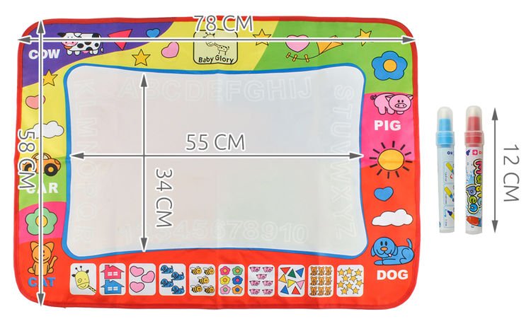 zīmējumu veidošanai. Paklājiņam ir arī apdrukas, kas var vadīt bērnu savas