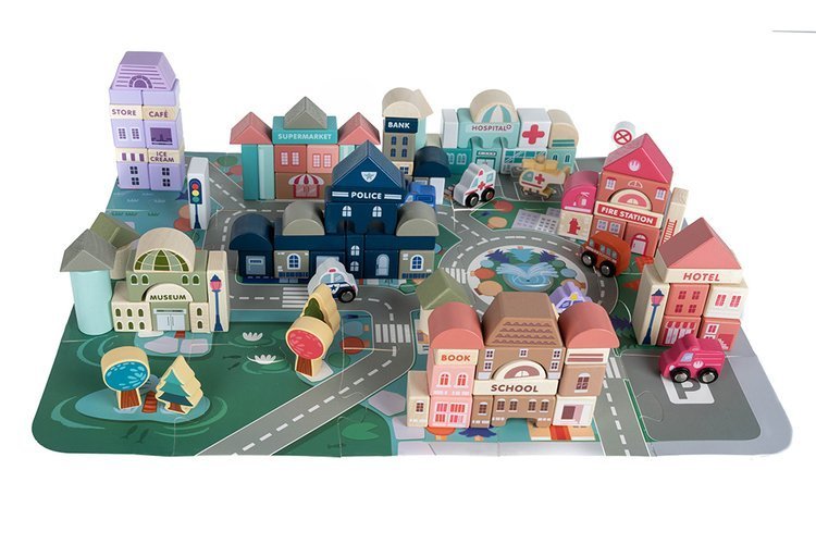 Wooden Blocks City komplekts ir lieliski piemērots ikvienam bērnam, kuram patīk