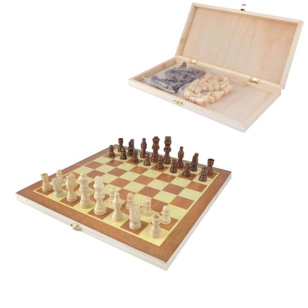 Šis ir koka šaha komplekts, kurā ietilpst dēlis un šaha figūriņas. Šaha
