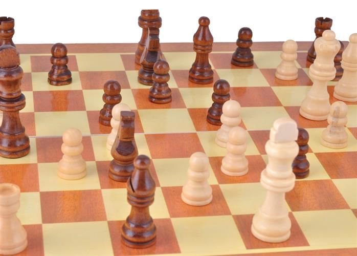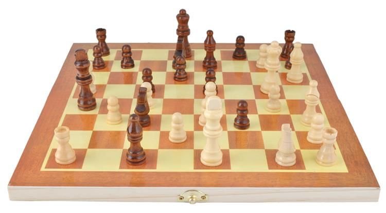 avots. Kad tas netiek lietots, šo šaha komplektu var salocīt un viegli uzglabāt.