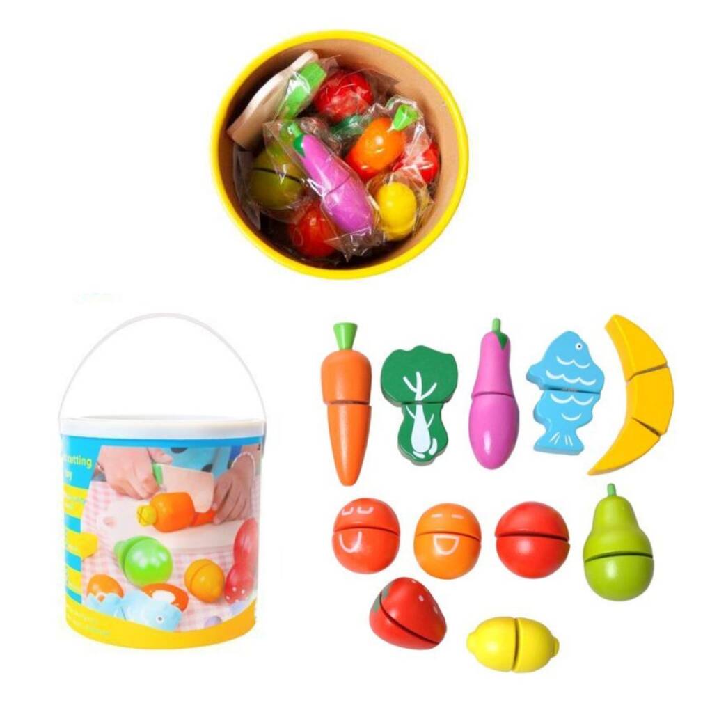 Koka augļu un dārzeņu griešanas rotaļu komplekts