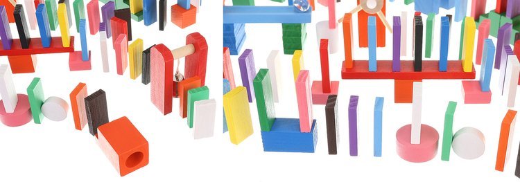 Šajā spēļu komplektā ir 407 gabali, tostarp 360 koka bloki, 3 bumbiņas, šūpoles, vējdzirnavas, zvans, piekārta bumba, pakāpieni, kāpnes, tiltiņi, slidkalniņi un daudz kas