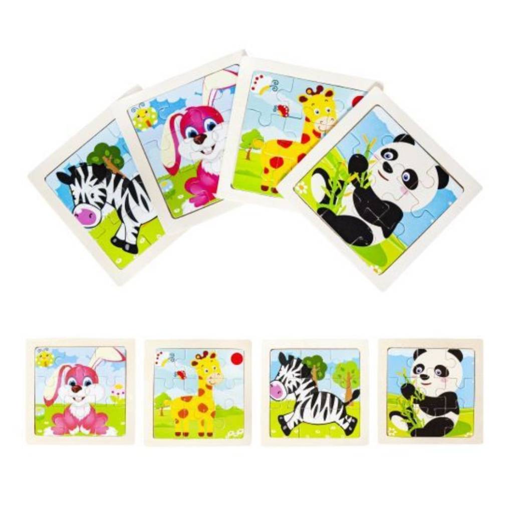 Šai koka puzlei ir 4 dažādi raksti: zebra, trusis, žirafe, panda. Tā ir lieliska