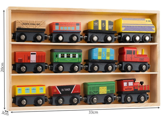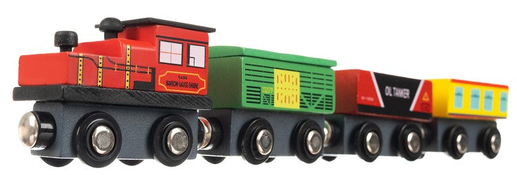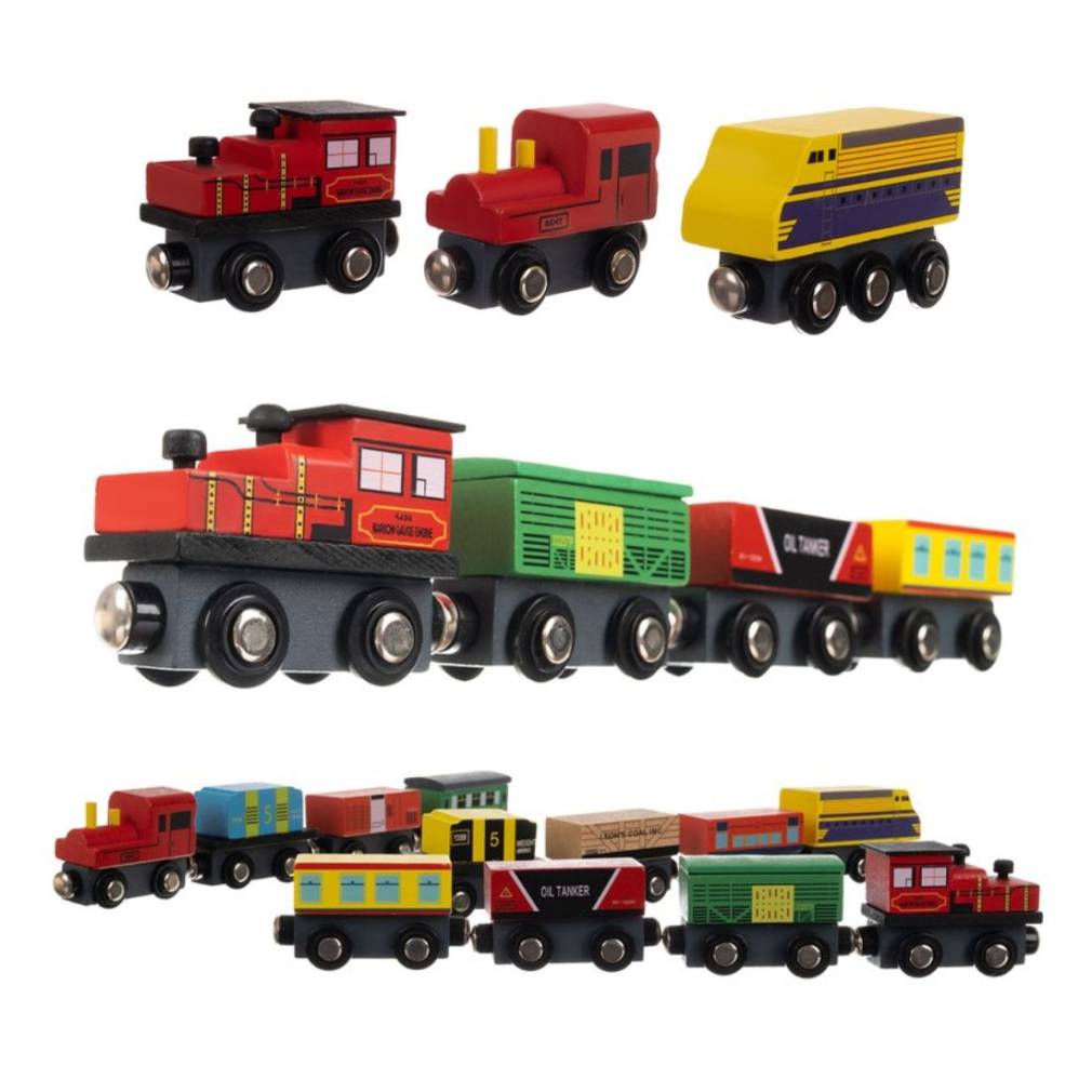 Vilciens ir izgatavots no kvalitatīva koka kas padara to izturīgu un noteikti kalpos jums ilgi. Koksne ir rūpīgi noslīpēta un visas malas ir noapaļotas. Vagonu savienošana notiek ar magnētu palīdzību.