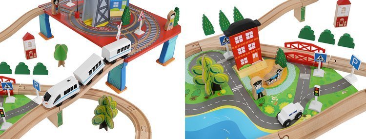 Rotaļlietu komplekts Wooden Railway ir izklaidējošs veids, kā bērni var likt